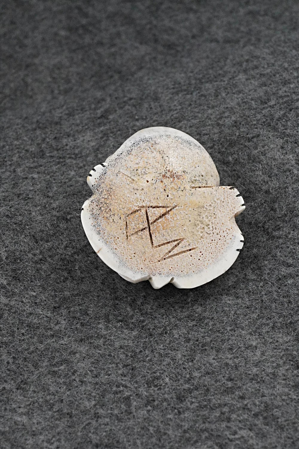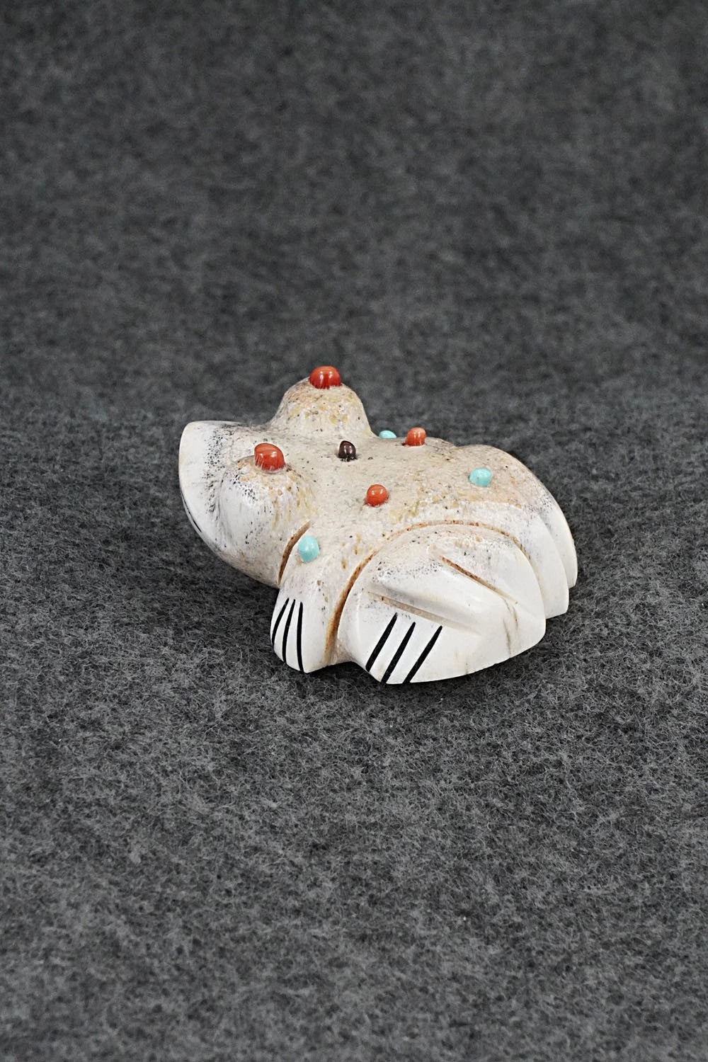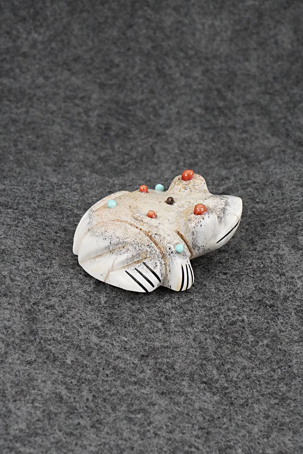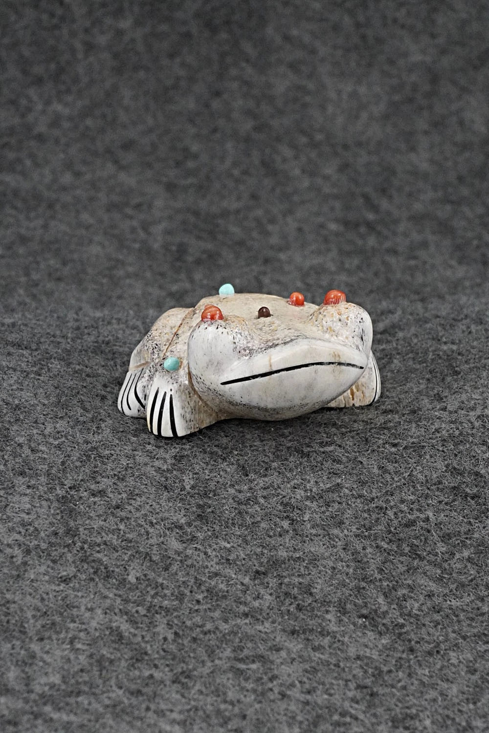 This frog Zuni fetish was carved by Claudia Peina. The bottom is signed CPZ.