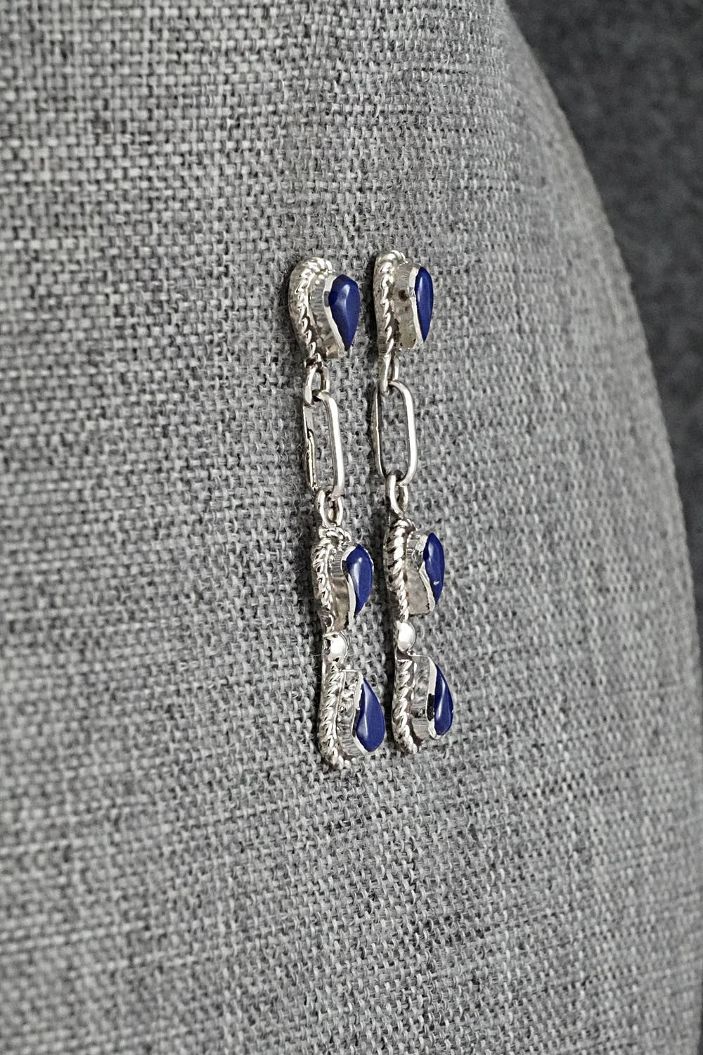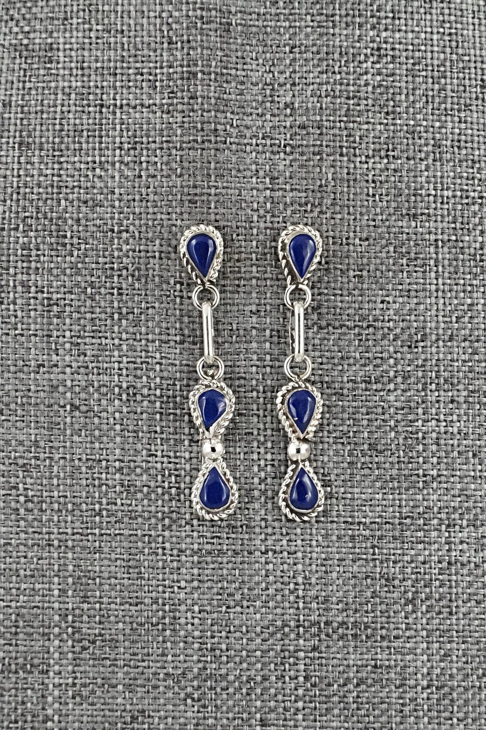 These lapis and sterling silver earrings were made by Zuni silversmith Carol Lateyice.