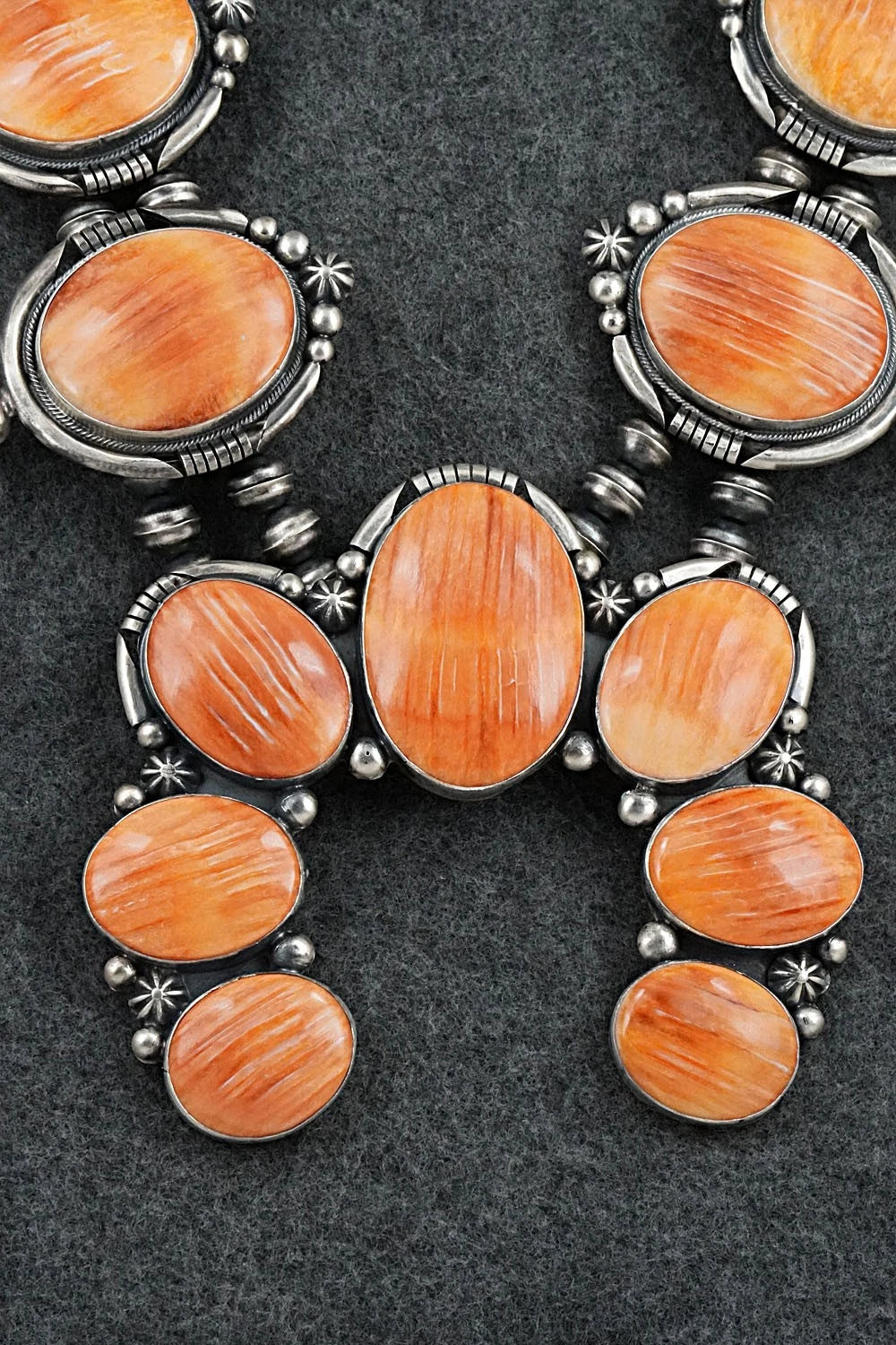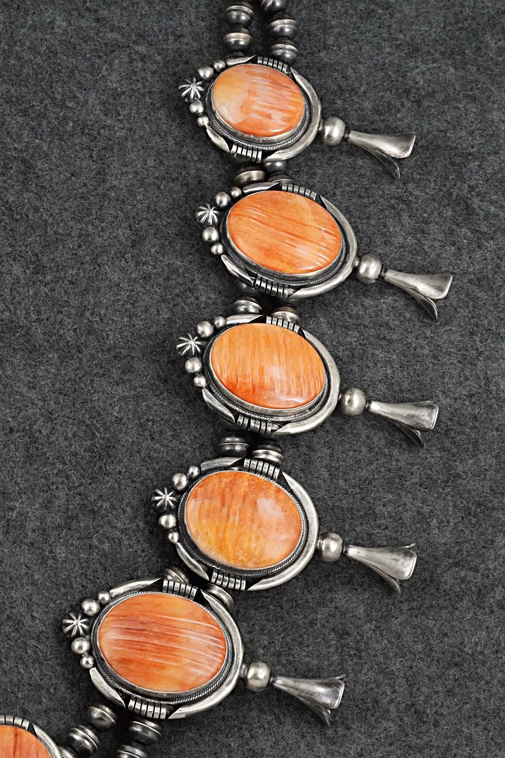 Spiny Oyster & Sterling Silver Squash Blossom Set - Paul Livingston