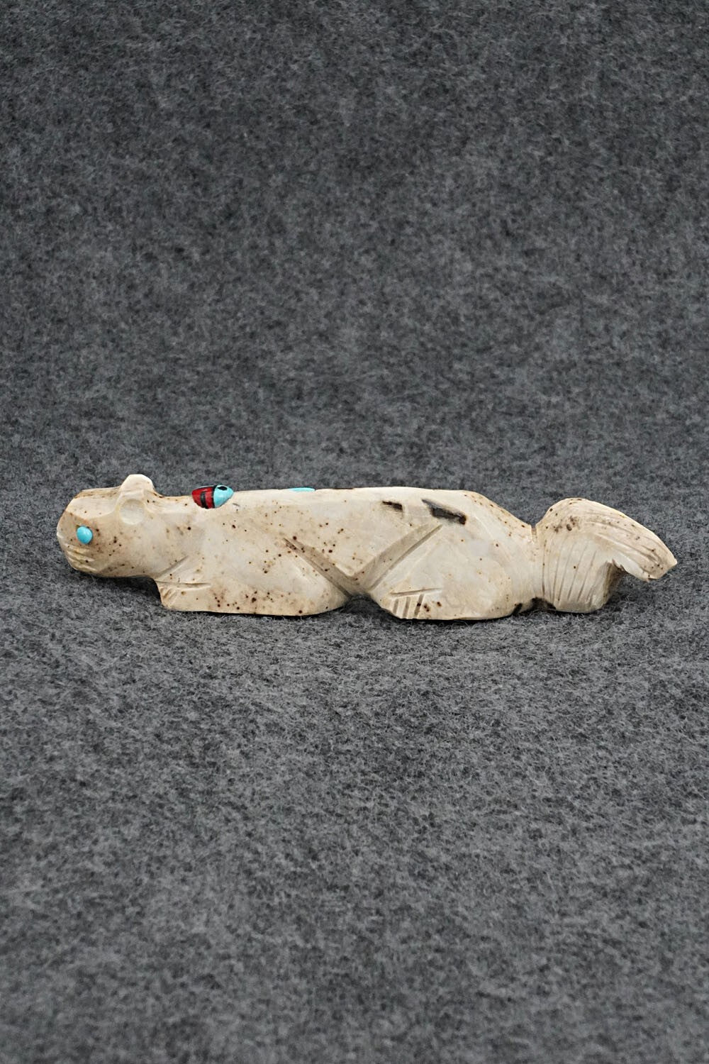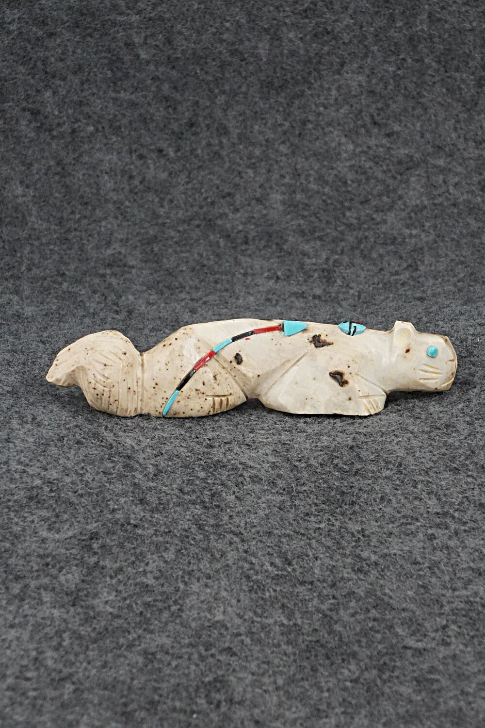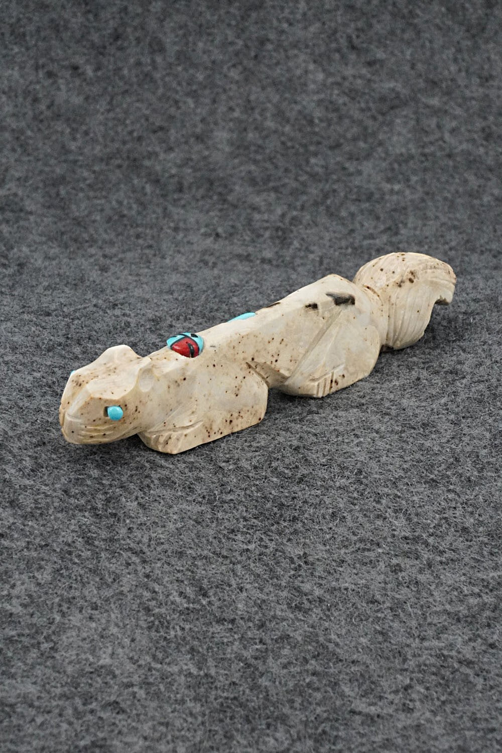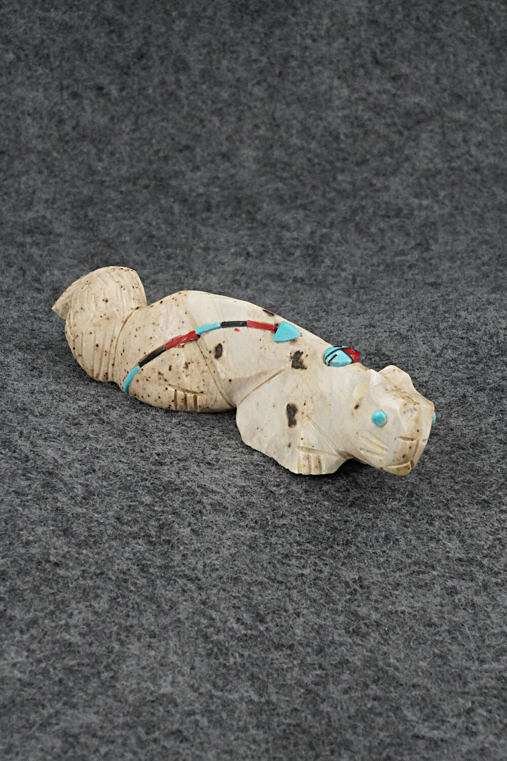This squirrel Zuni fetish was carved by Danette Laate. The bottom is signed.