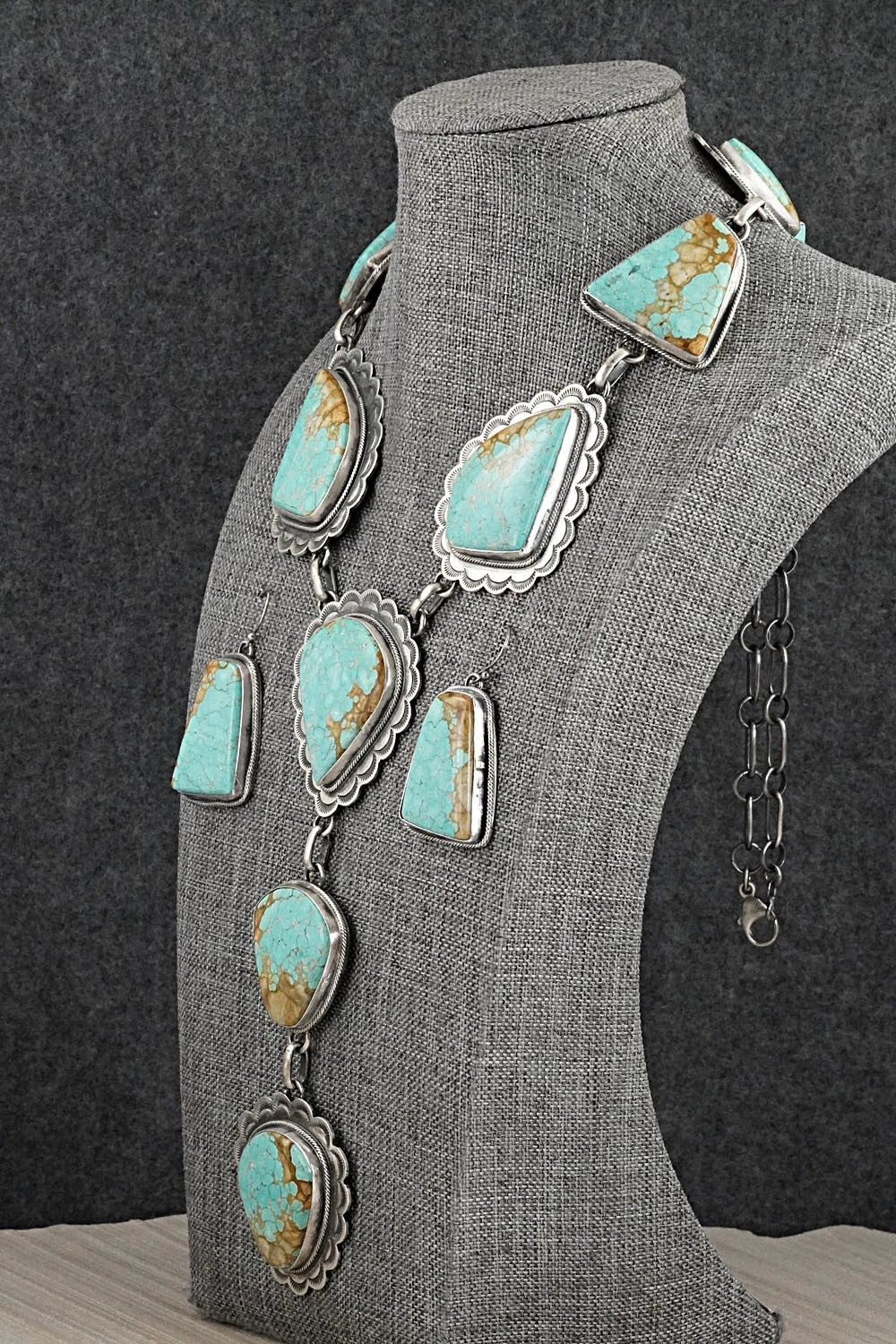 Turquoise & Sterling Silver Necklace and Earrings Set - Bobby Johnson