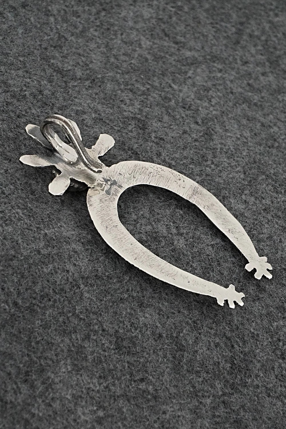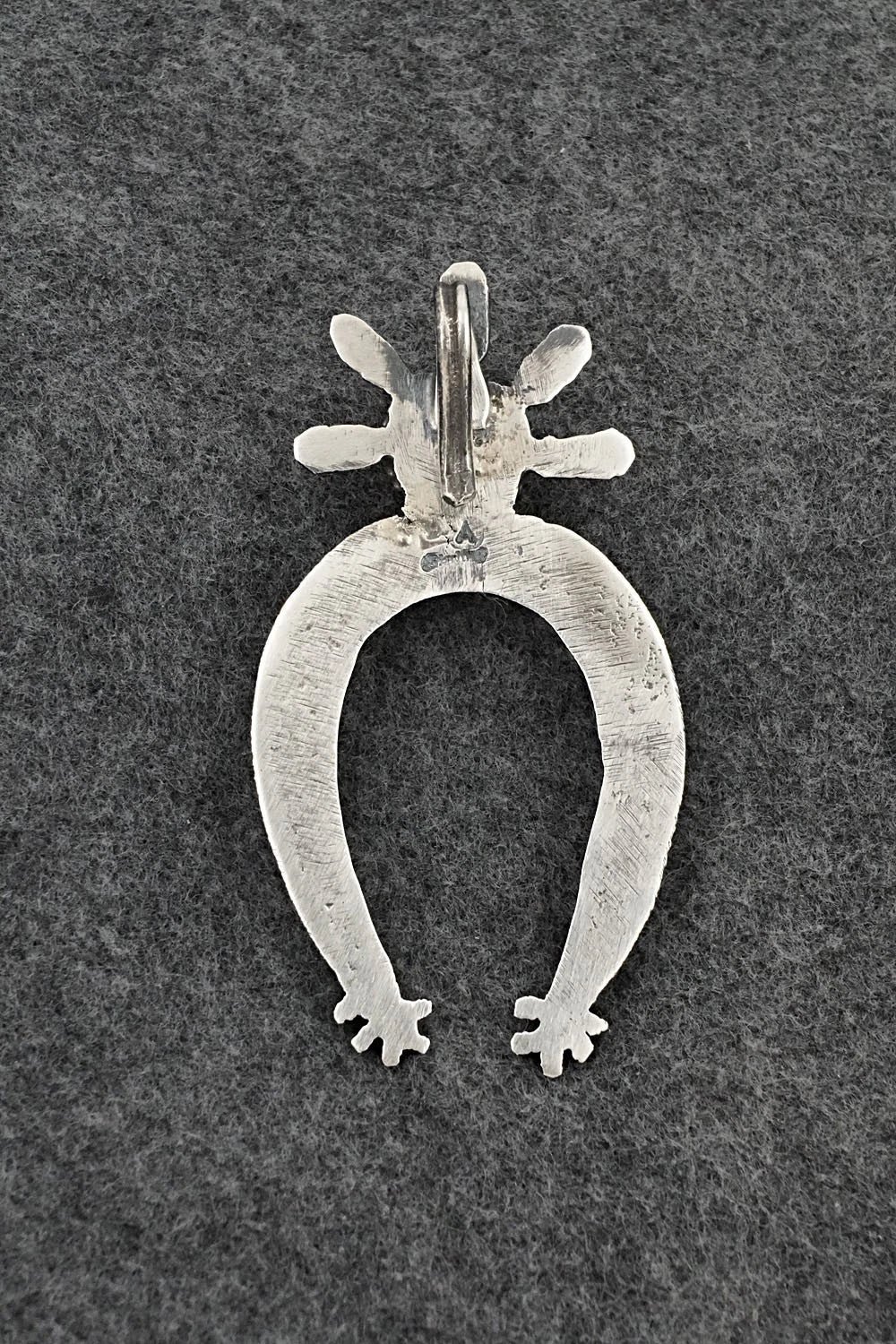 This beautiful turquoise and bright-polish sterling silver pendant was made by Navajo silversmith Delbert Arviso. The back is signed DA and stamped sterling.