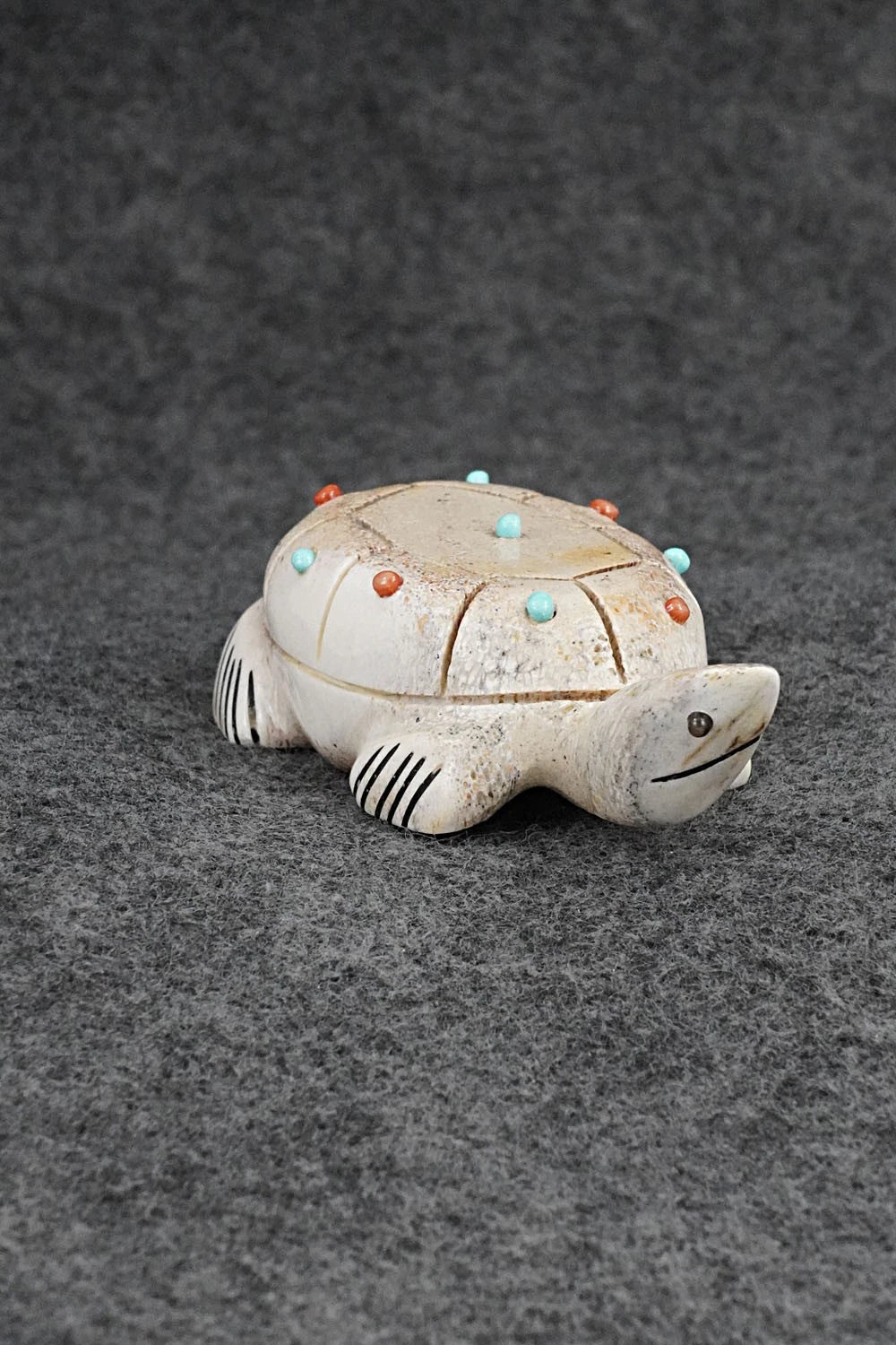 This turtle Zuni fetish was carved by Claudia Peina. The bottom is signed CPZ.