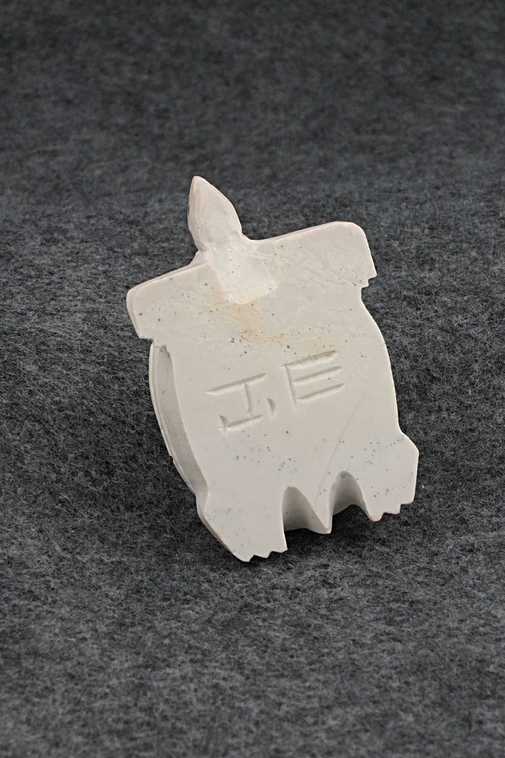 This turtle with smaller turtle on back Zuni fetish was carved by Jesus Espino. The bottom is signed JE.