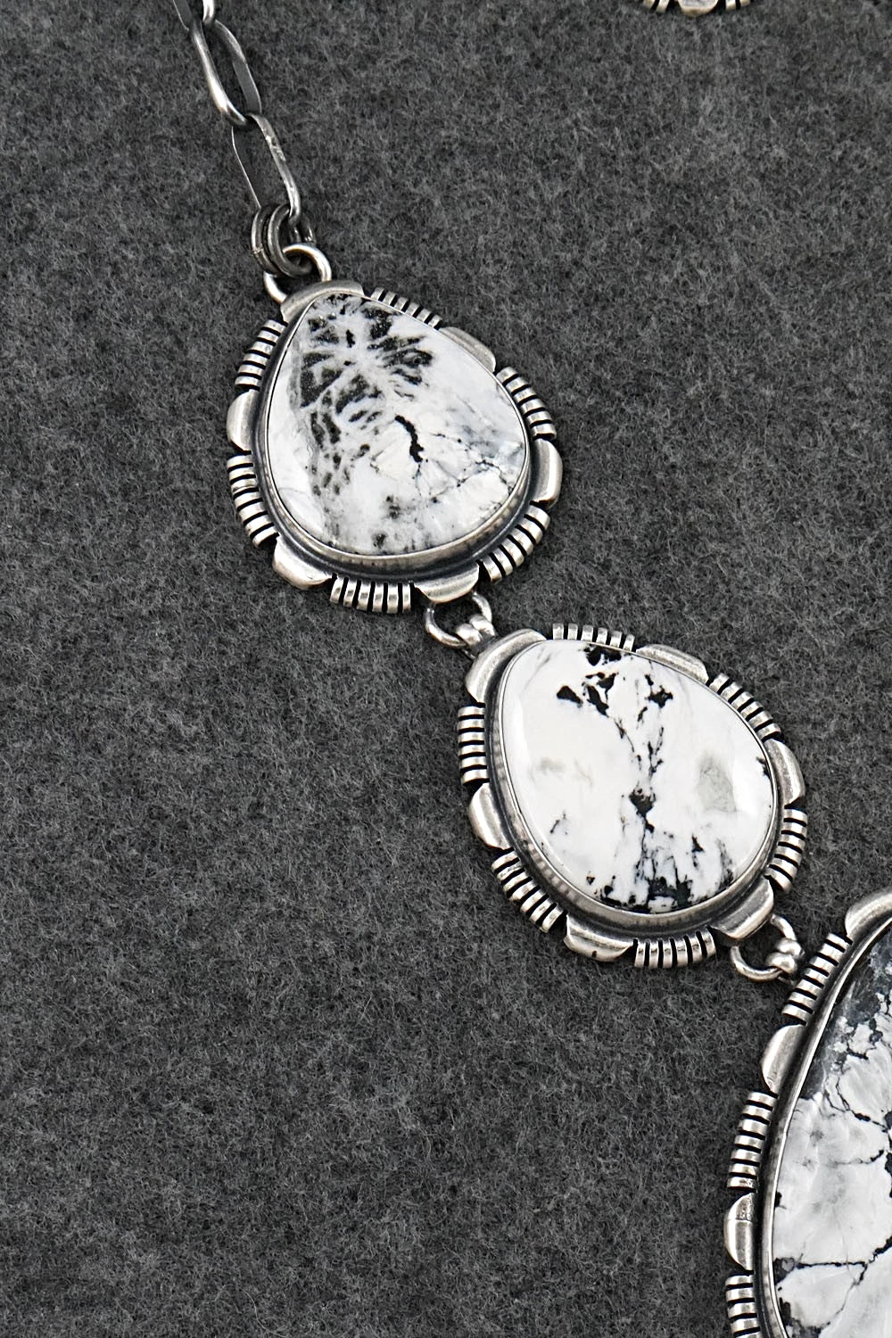 White Buffalo & Sterling Silver Necklace and Earrings Set - Mark Yazzie
