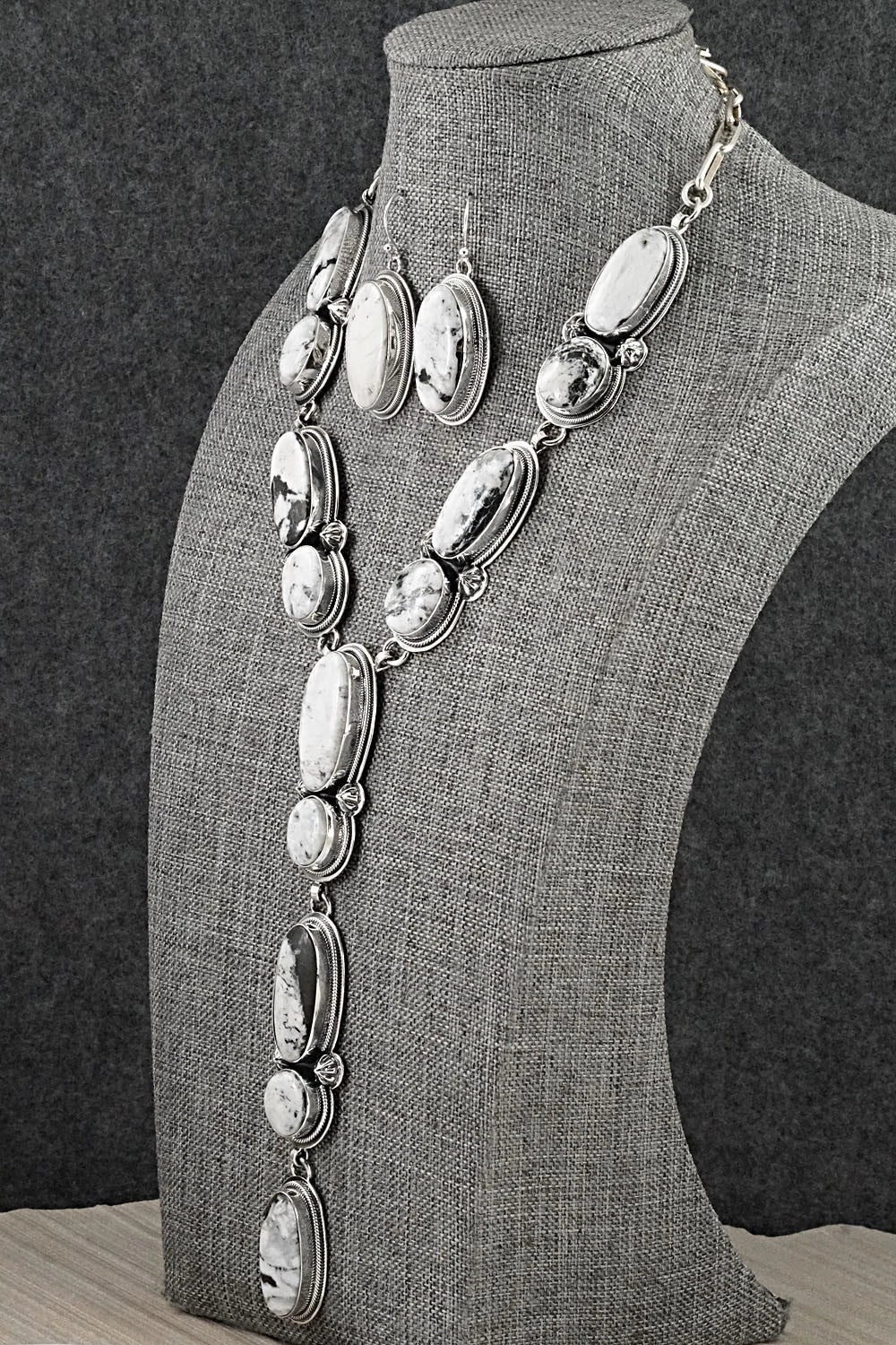 White Buffalo & Sterling Silver Necklace and Earrings Set - Mark Yazzie