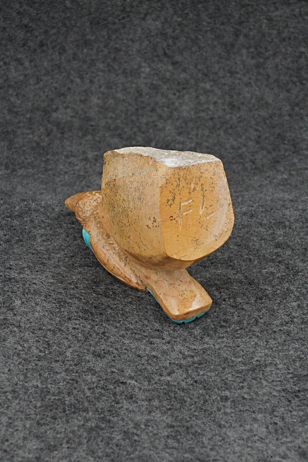 This woodpecker Zuni fetish was carved by Freddie Leekya. The bottom is signed FL.