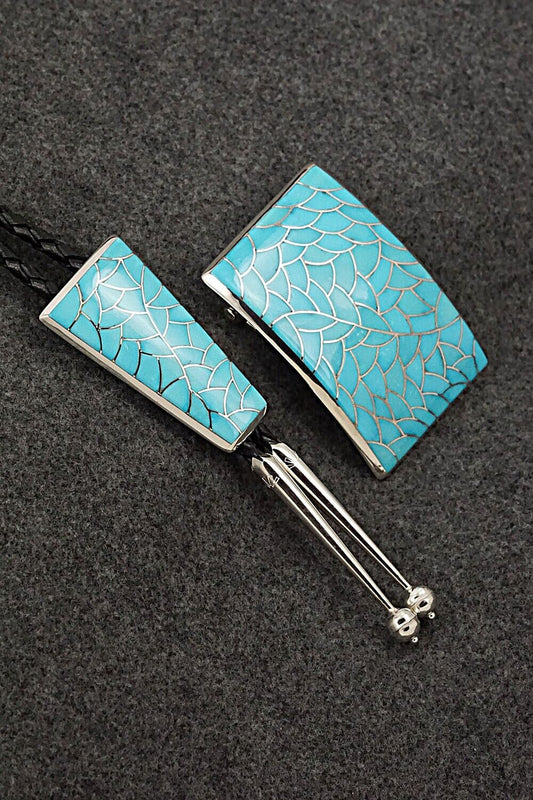 Turquoise & Sterling Silver Bolo Tie & Belt Buckle - Stuart Tucson