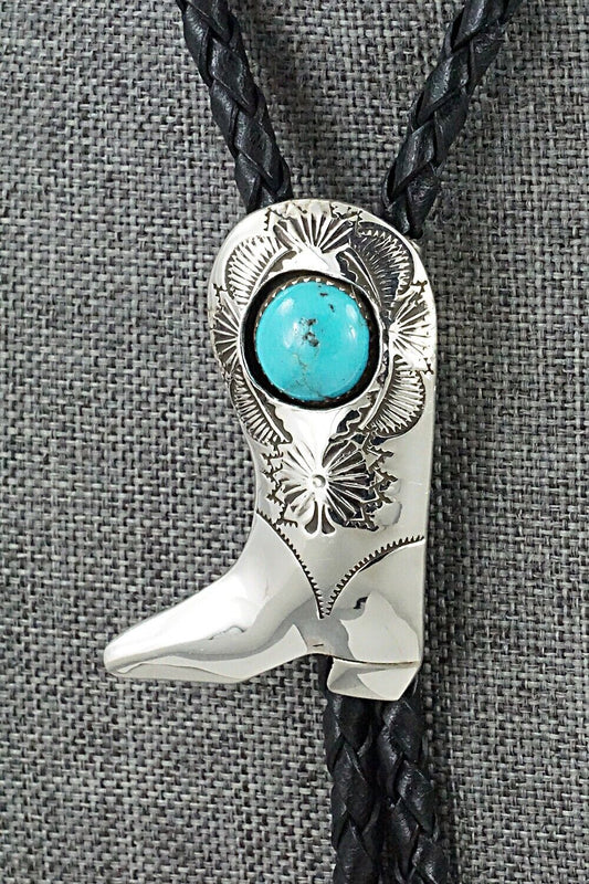 Turquoise & Sterling Silver Bolo Tie - Shirley Skeets