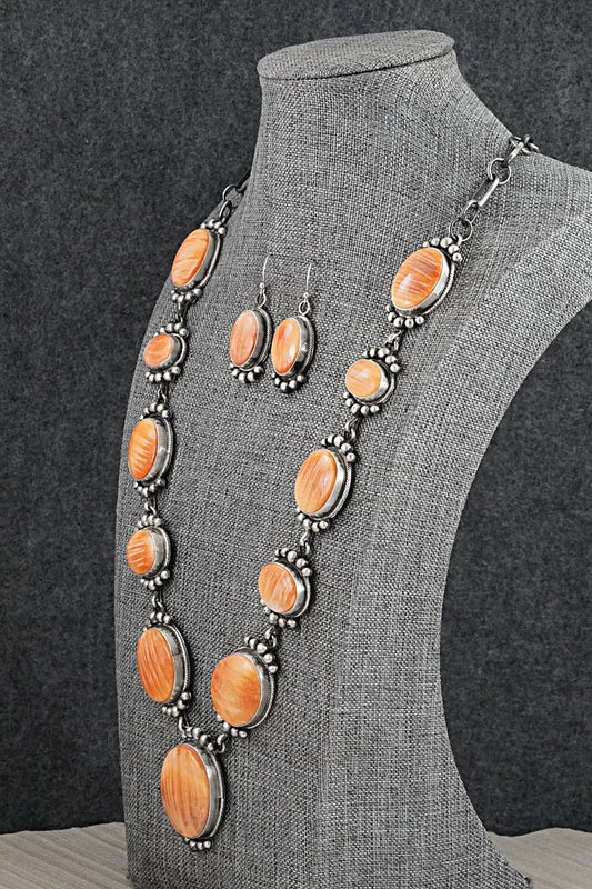 Spiny Oyster & Sterling Silver Necklace and Earrings Set - Paul Livingston