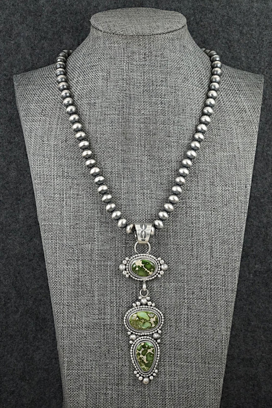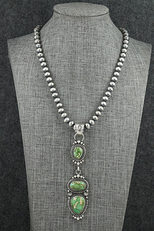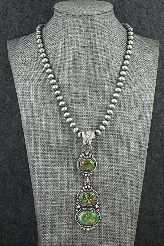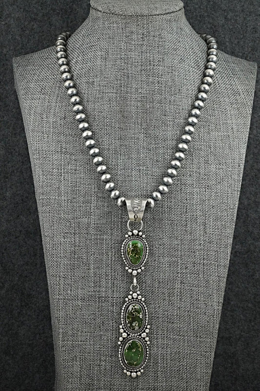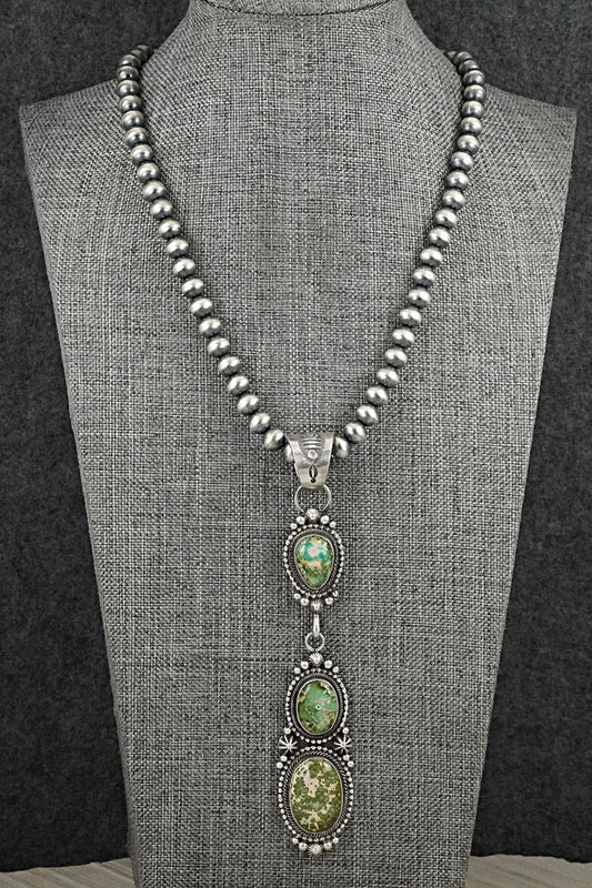 Turquoise & Sterling Silver Navajo Pearl Necklace 24" - Tonisha Haley