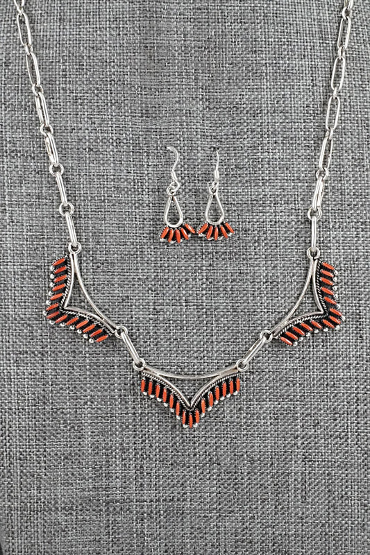 Coral & Sterling Silver Necklace and Earrings Set - Mildred Ukestine