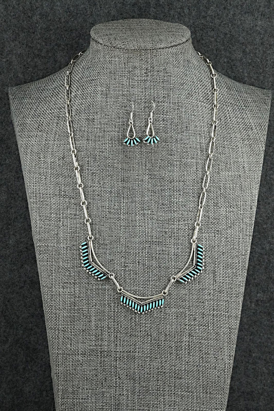 Turquoise & Sterling Silver Necklace and Earrings Set - Mildred Ukestine