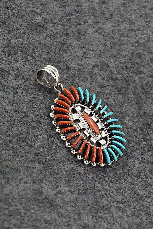 Turquoise, Coral & Sterling Silver Pendant - Edmund Cooeyate