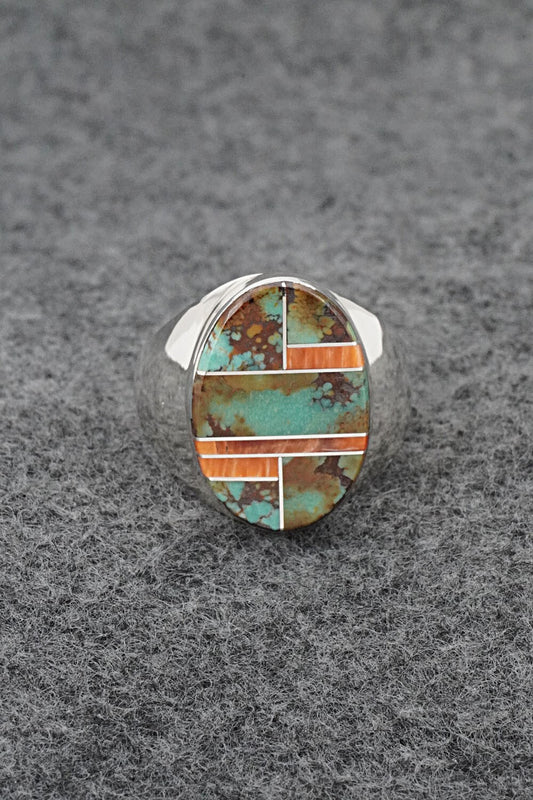 Turquoise, Spiny Oyster & Sterling Silver Ring - Wilbert Gray - Size 11.5