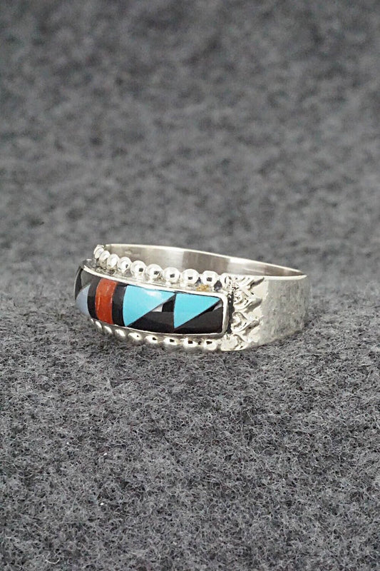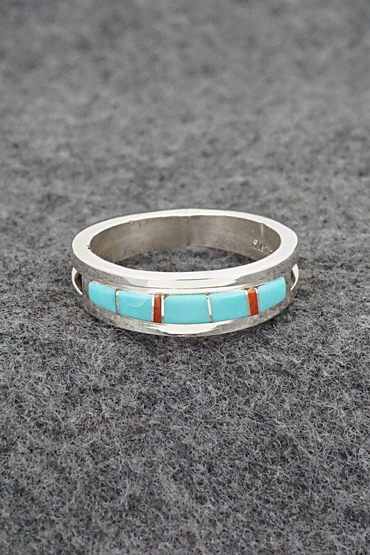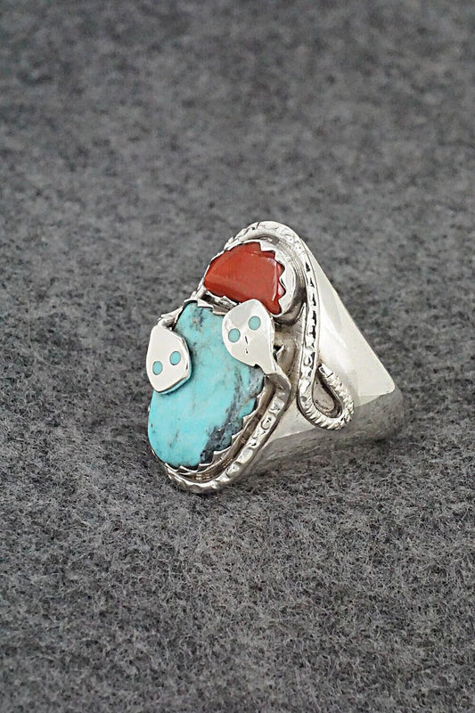 Turquoise, Coral & Sterling Silver Ring - Joy Calavaza - Size 11.5
