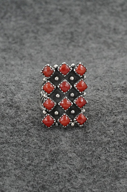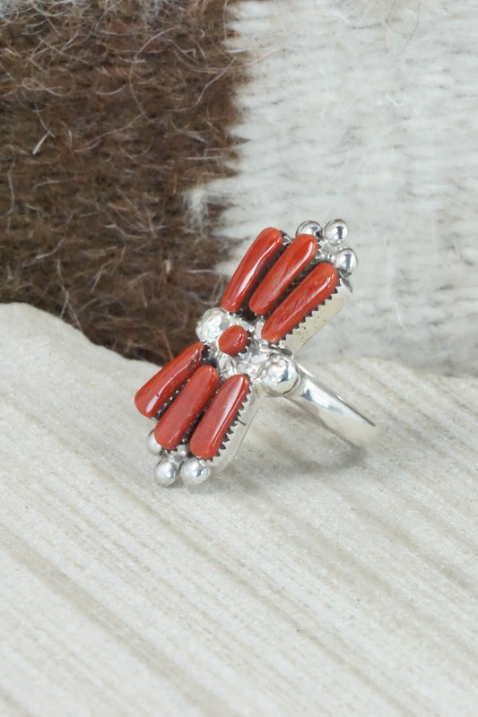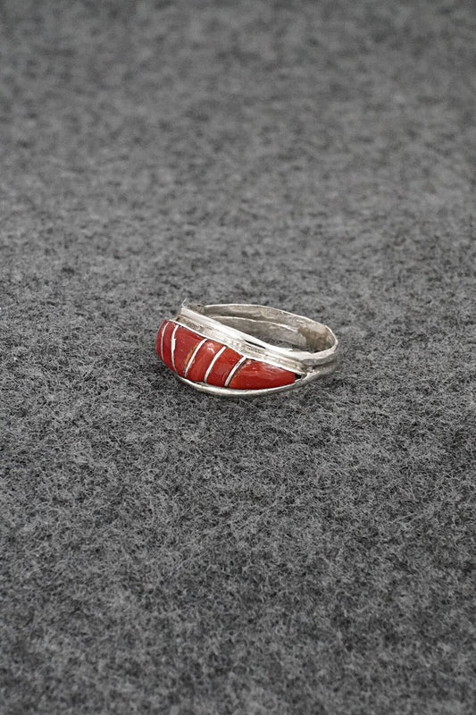 Coral & Sterling Silver Inlay Ring - Ola Eriacho - Size 5.5