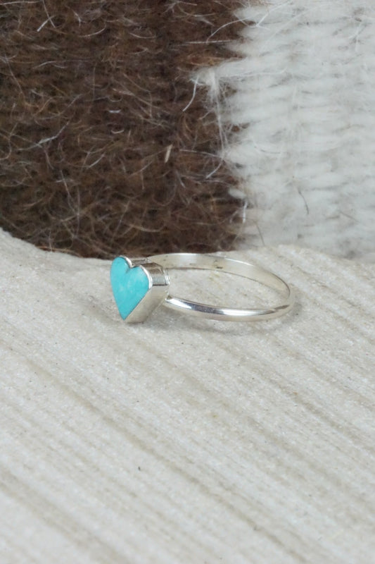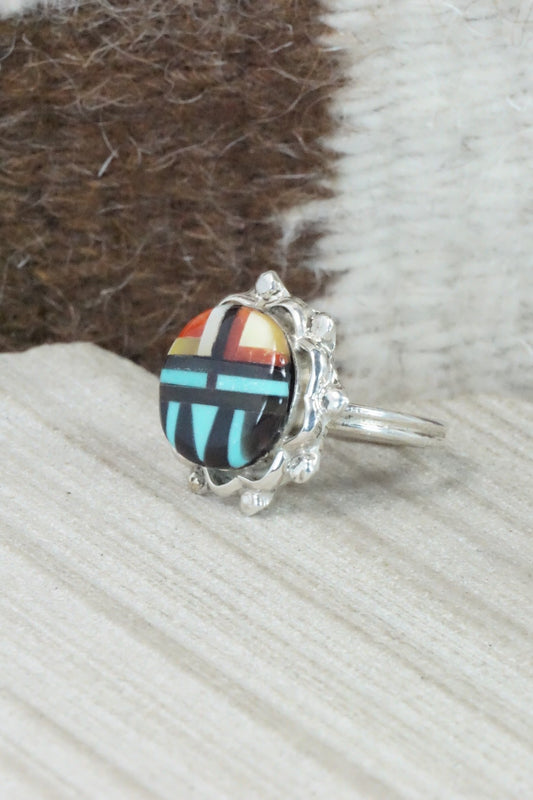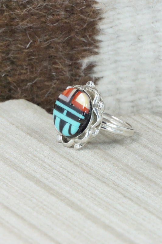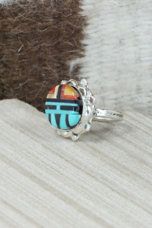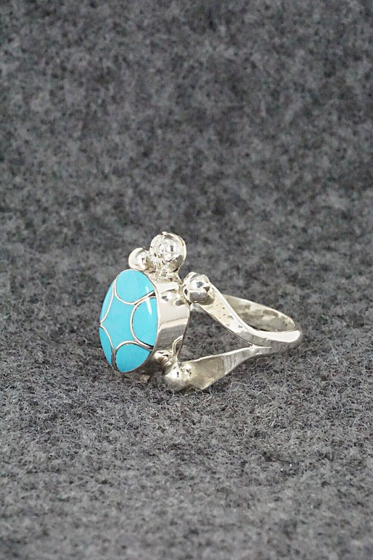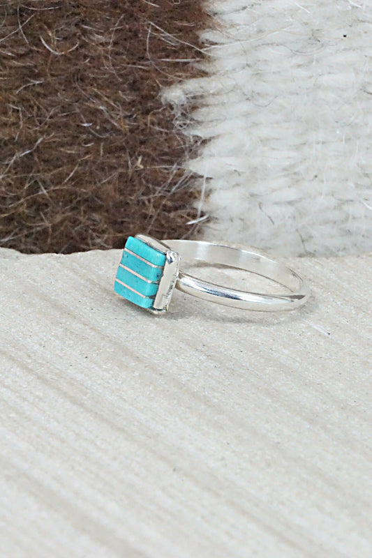 Turquoise & Sterling Silver Inlay Ring - Amielda Peynetsa - Size 5.5