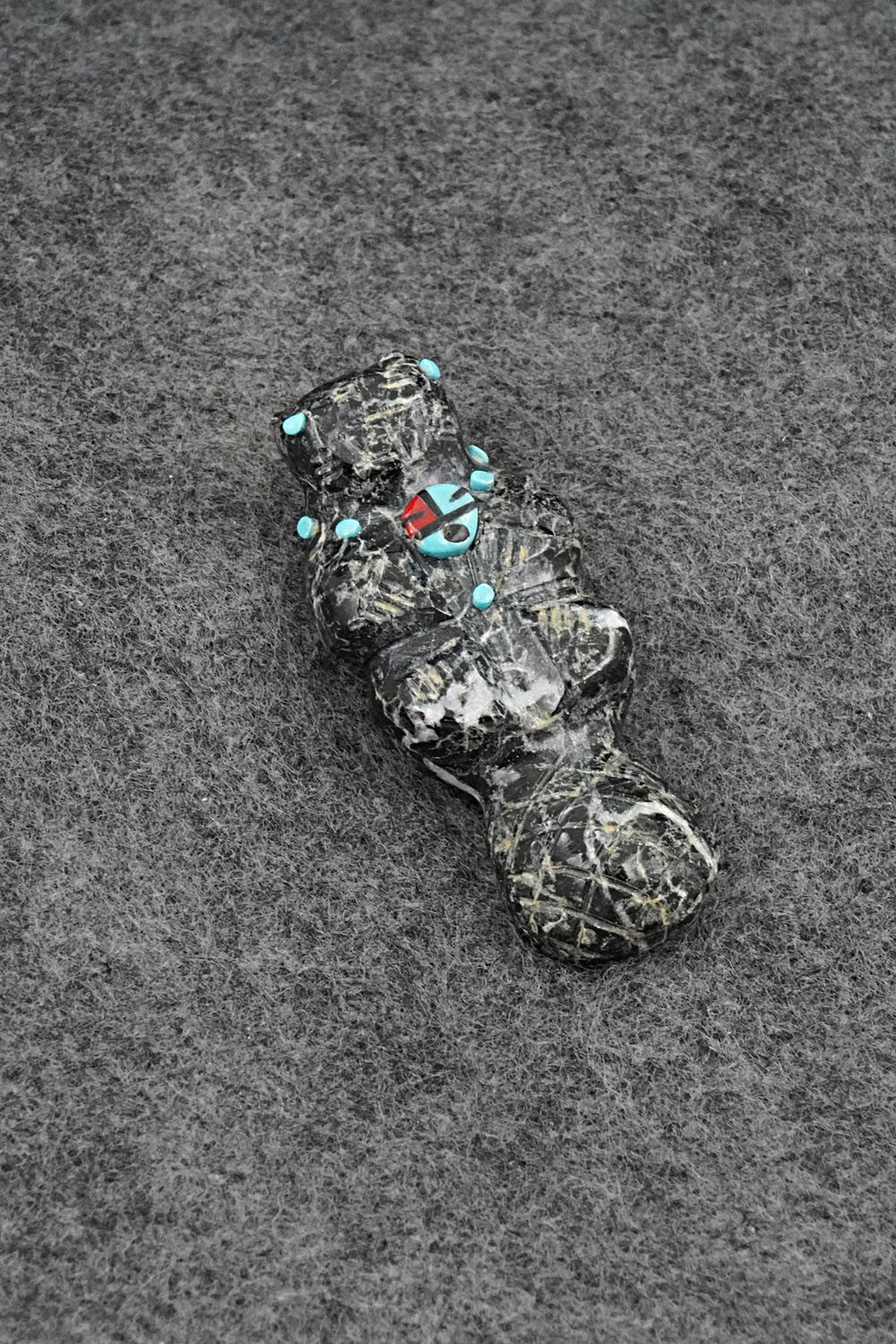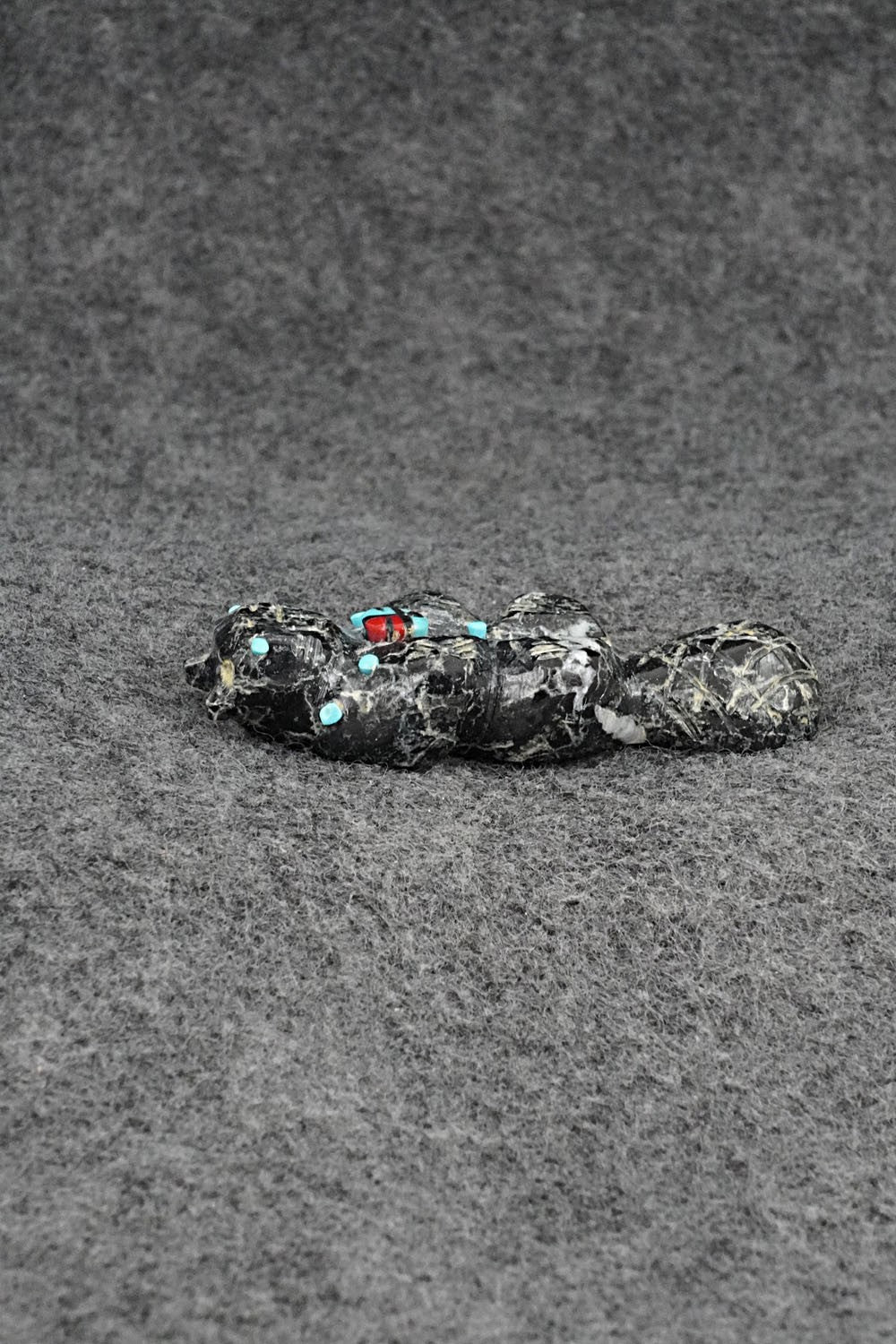 This beaver Zuni fetish was carved by Dannette Laate. The bottom is signed DL.