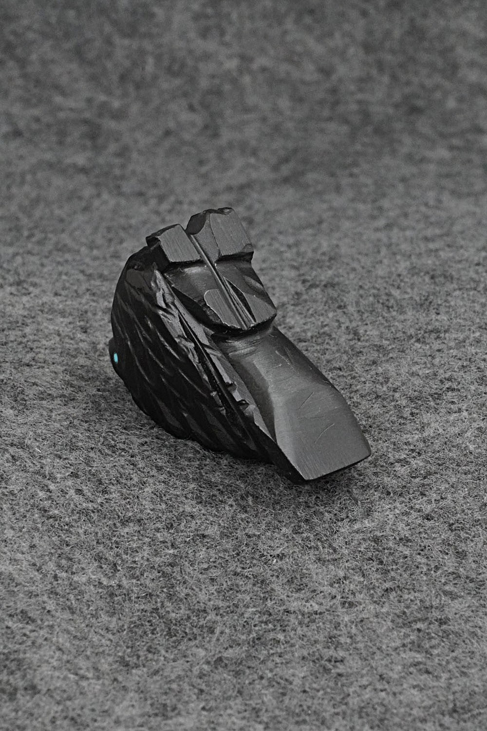 This crow Zuni fetish was carved by Tony Mackel. The bottom is signed TM.
