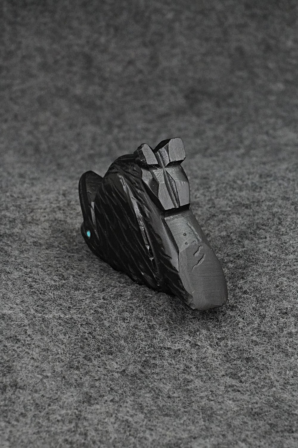 This crow Zuni fetish was carved by Tony Mackel. The bottom is signed TM.