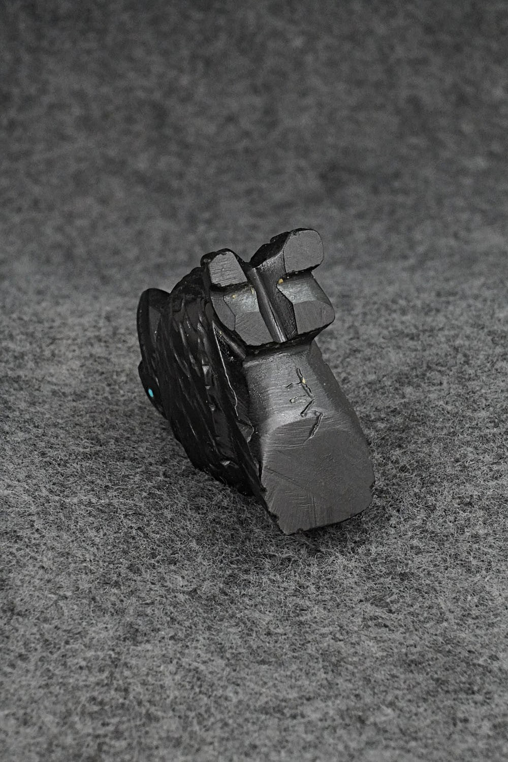 This crow Zuni fetish was carved by Tony Mackel. The bottom is signed TM.