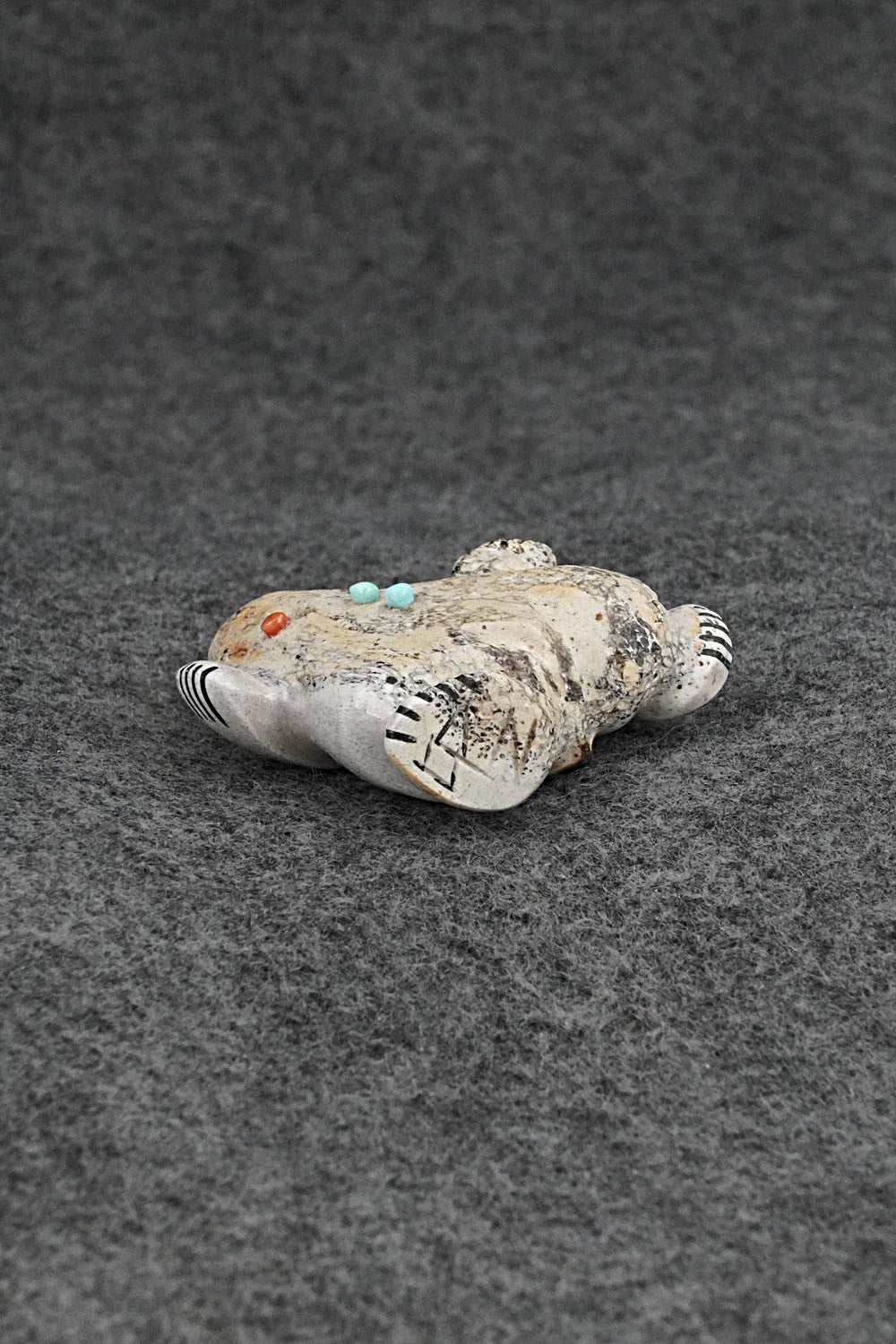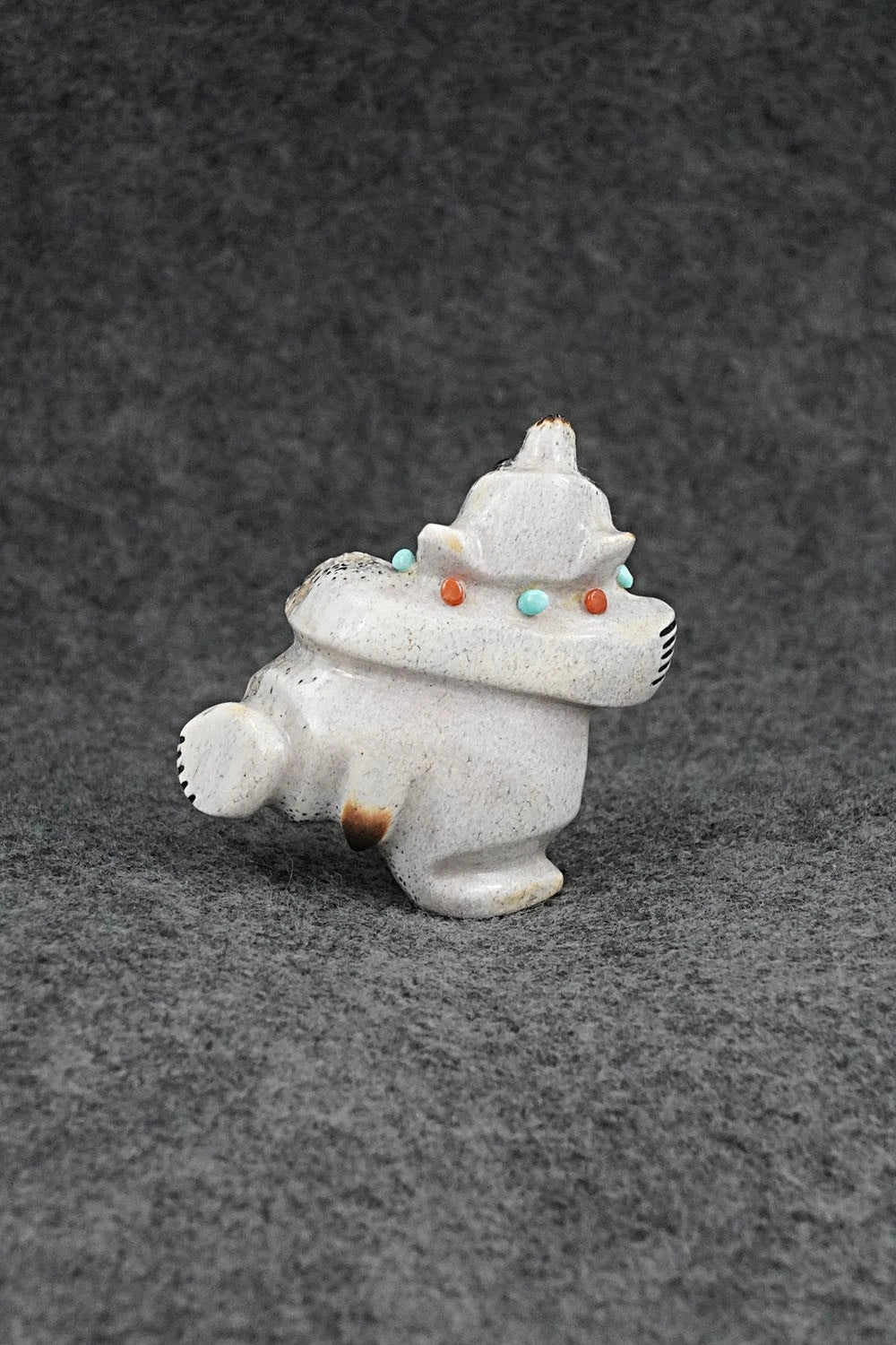 This dancing bear Zuni fetish was carved by Claudia Peina. The bottom is signed CPZ.