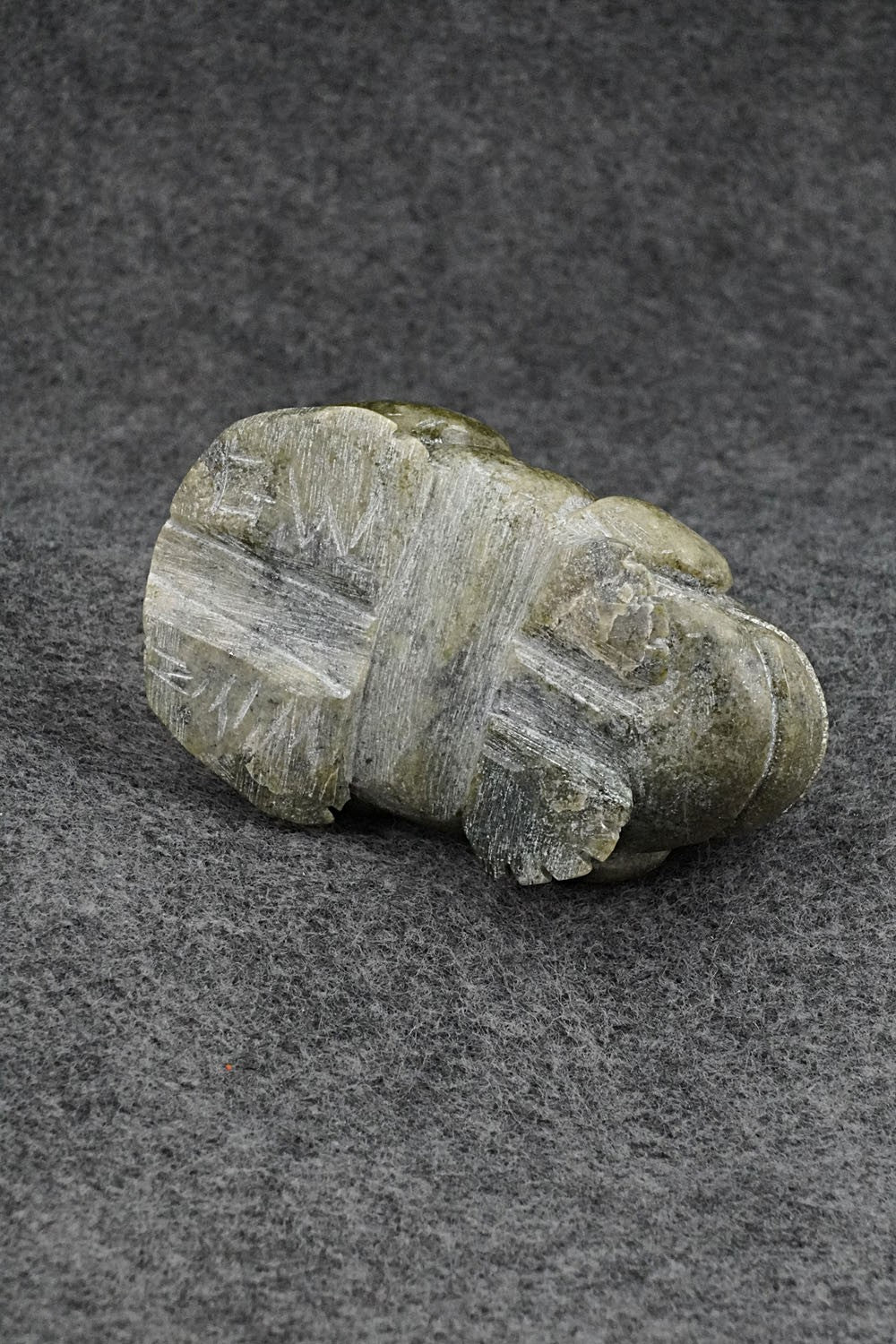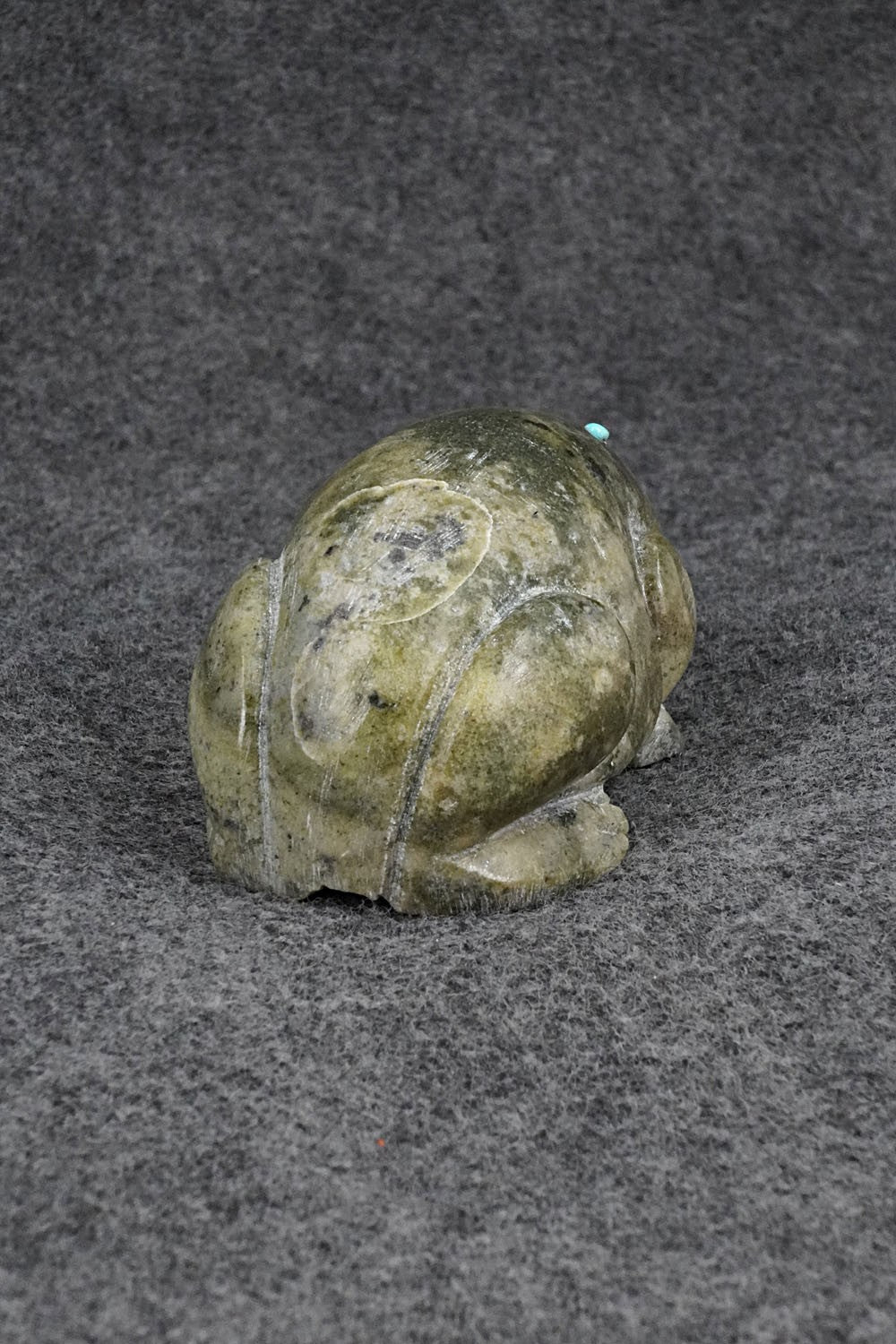 This frog Zuni fetish was carved by Garrick Weeka. The bottom is signed G.W. and Z.N.M.