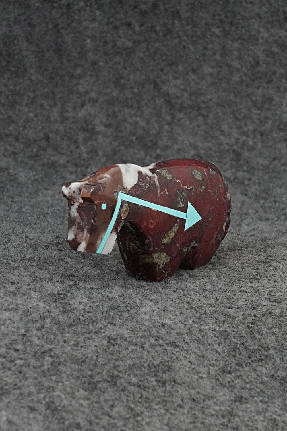 This horse with inlay arrow design Zuni fetish was carved by Bernard Laiwakete. The bottom is signed BL and Zuni.