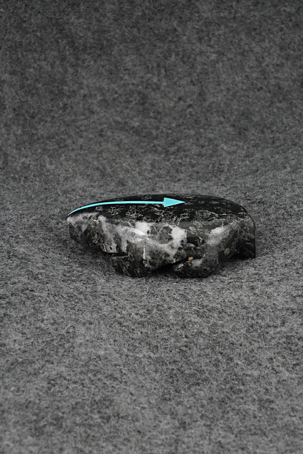 This mole with inlay arrow design Zuni fetish was carved by Bernard Laiwakete. The bottom is signed BL and Zuni.