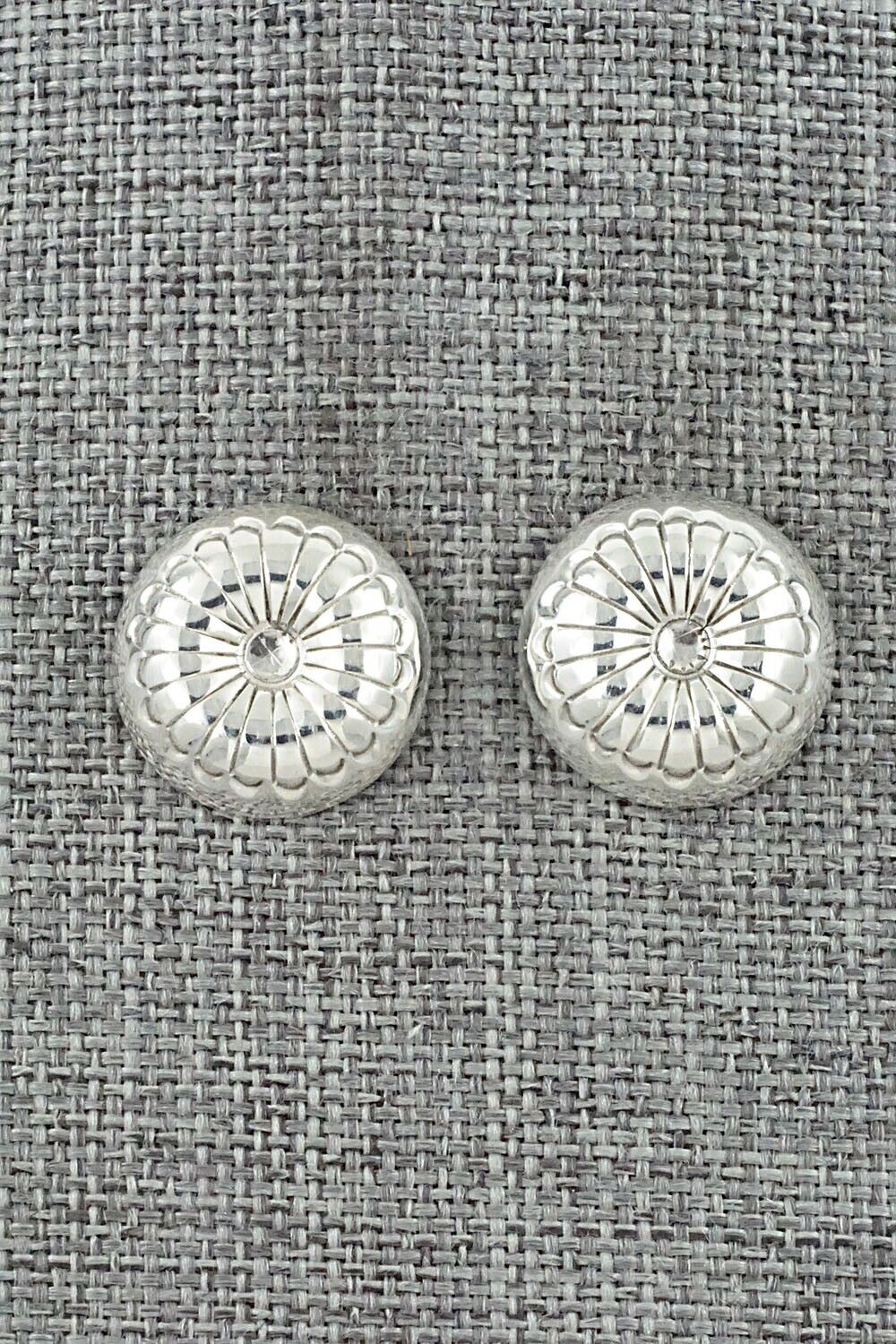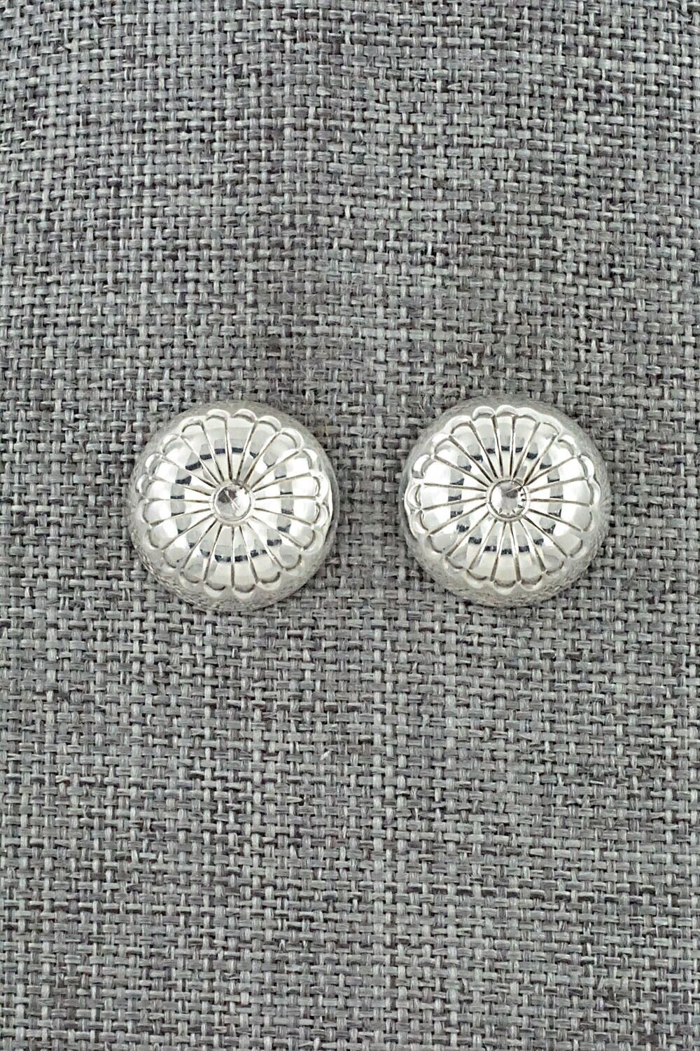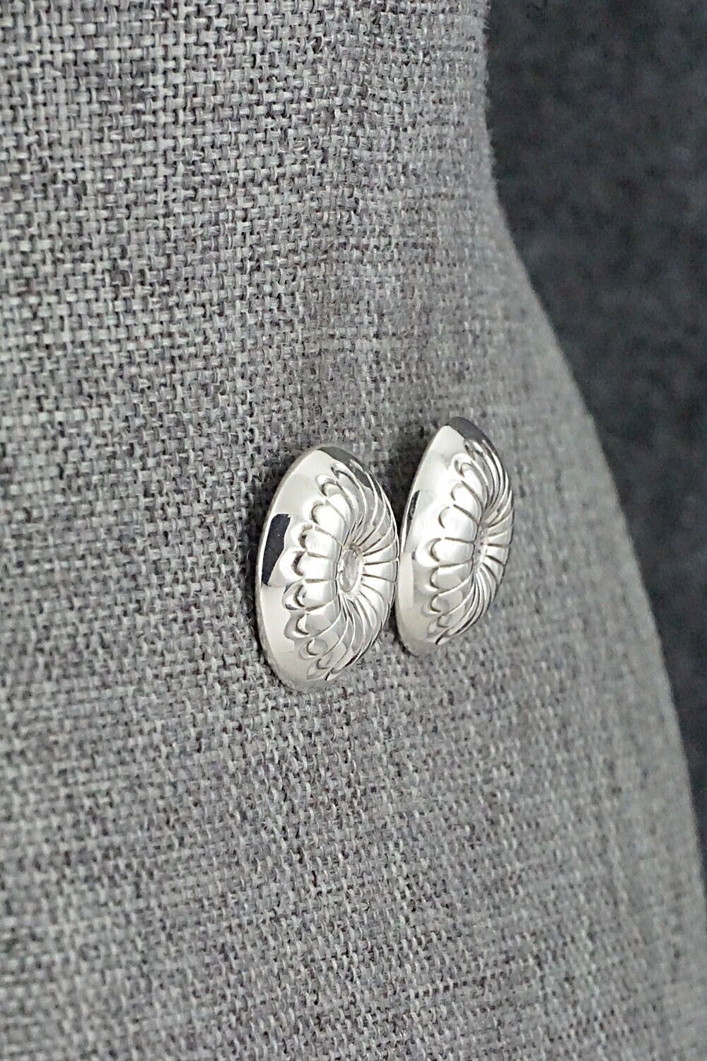 These sterling silver earrings were made by Navajo silversmith Marie Yazzie.