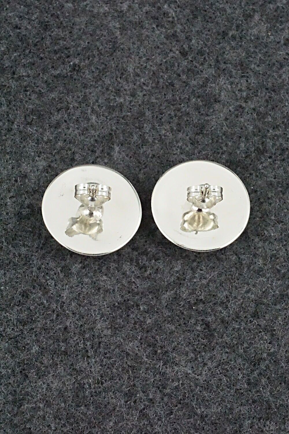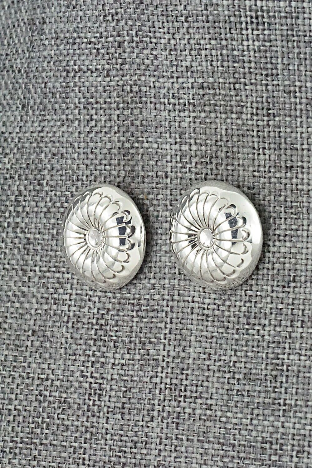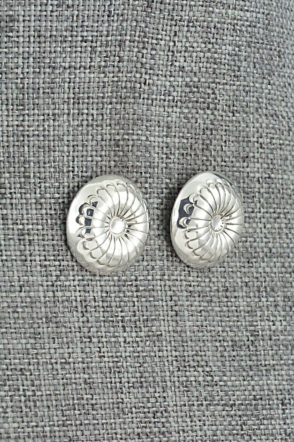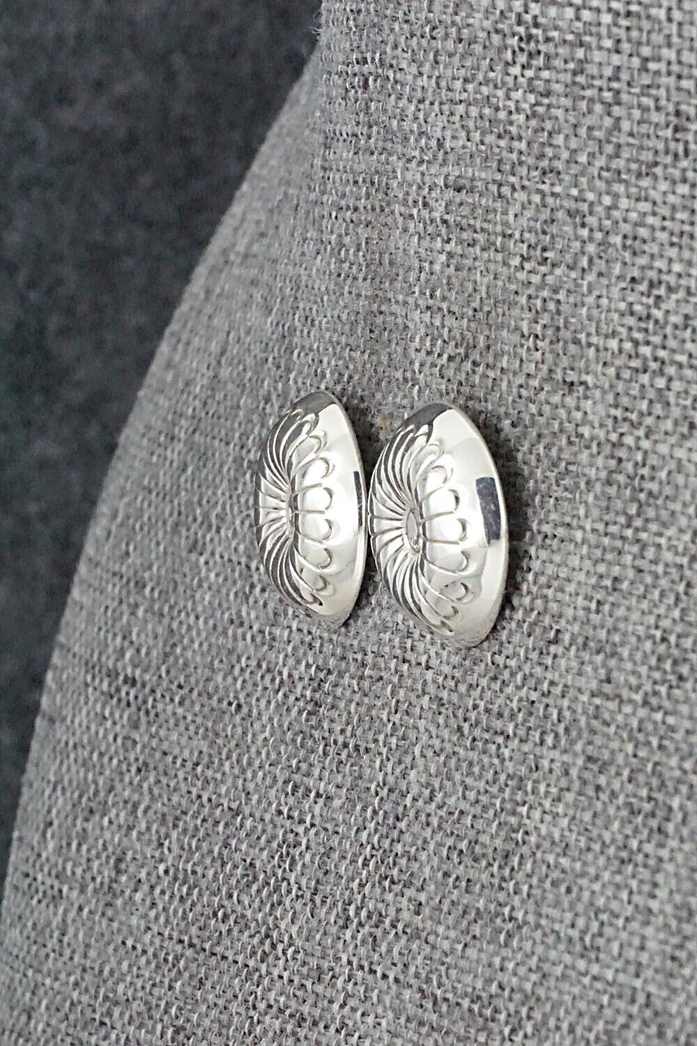 These sterling silver earrings were made by Navajo silversmith Marie Yazzie.