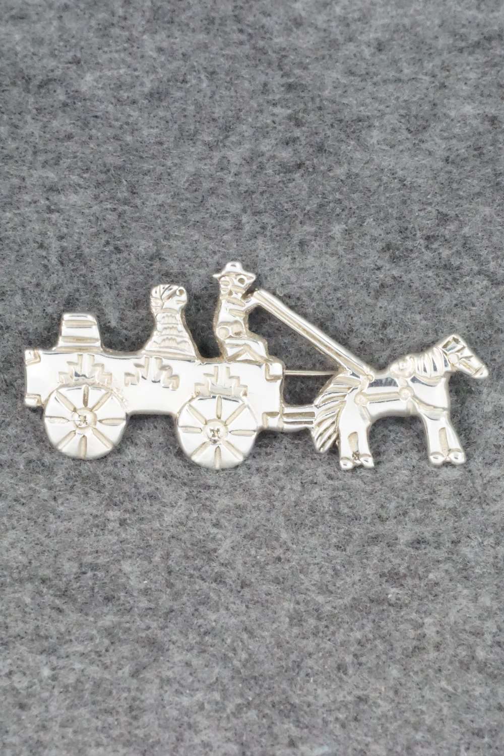 This sterling silver pin was made by Navajo silversmith Allison Manuelito. The back is signed AM and stamped sterling.