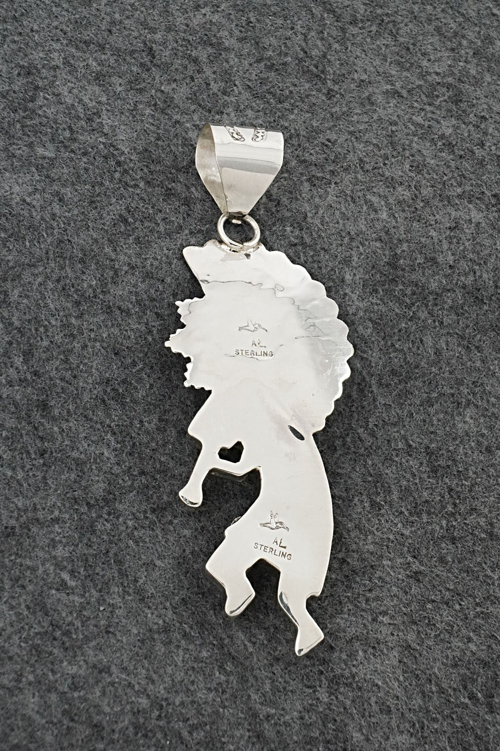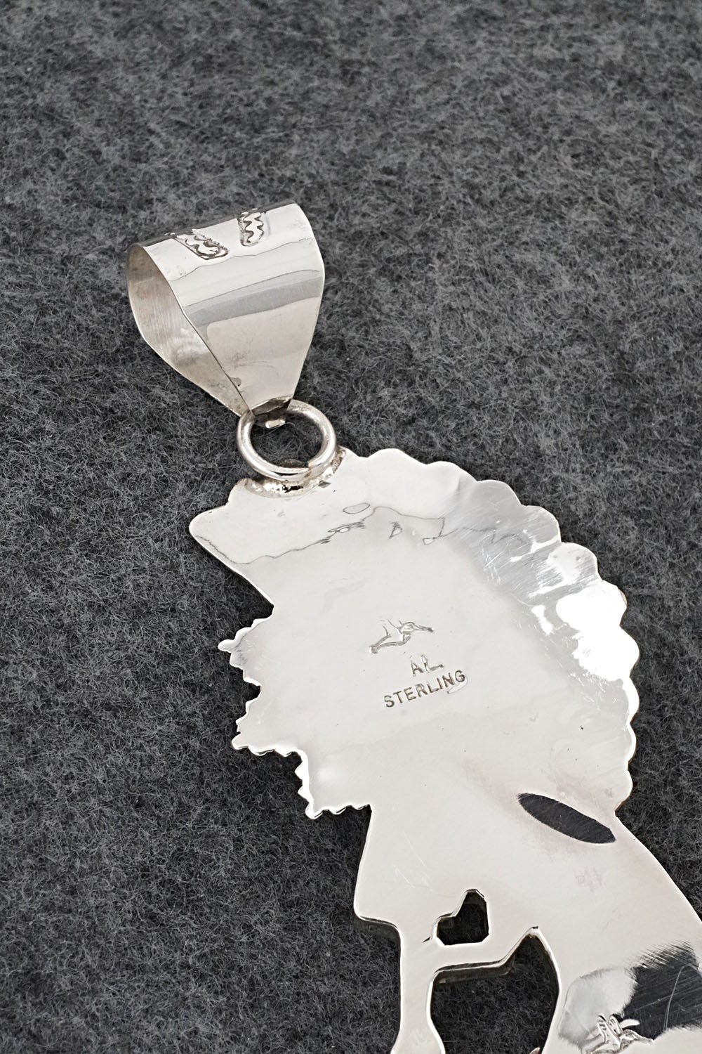 This beautiful turquoise and bright-polish sterling silver pendant was made by Navajo silversmith Alonzo Mariano. The back is stamped AL and sterling.