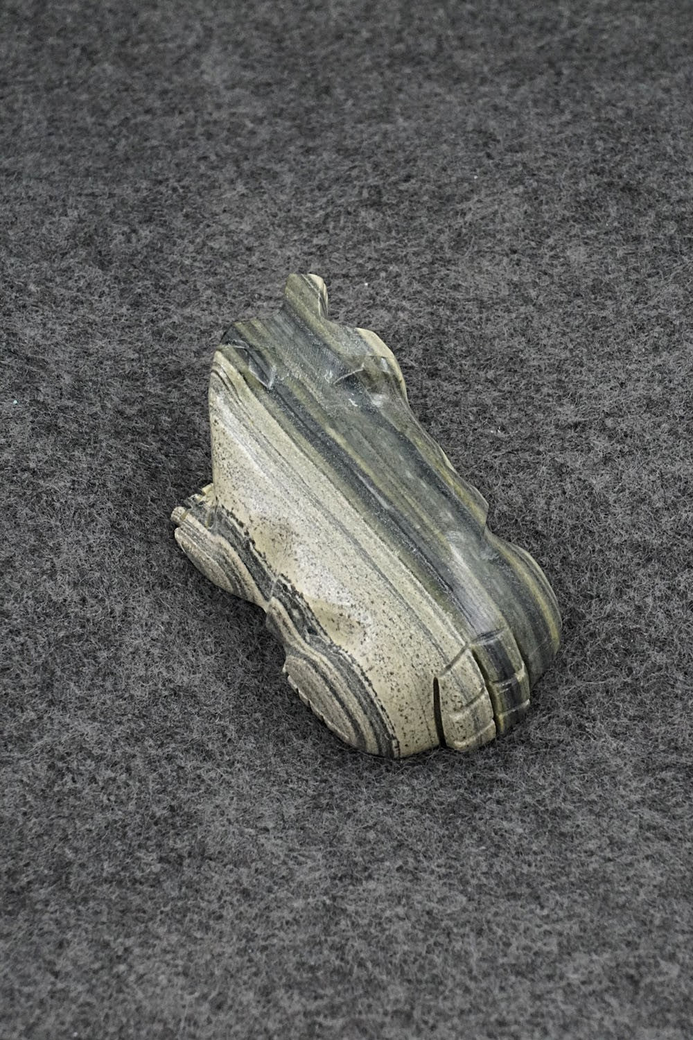 This badger Zuni fetish was carved by David Chavez. The bottom is signed DC.