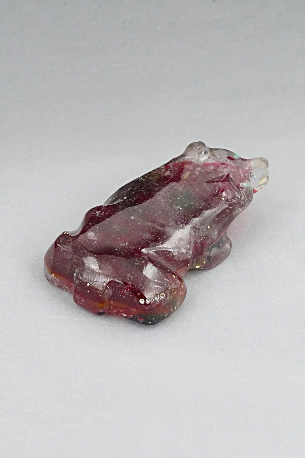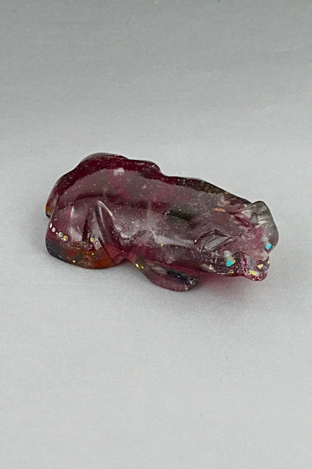This badger Zuni fetish was carved by David Chavez. The bottom is signed DC.