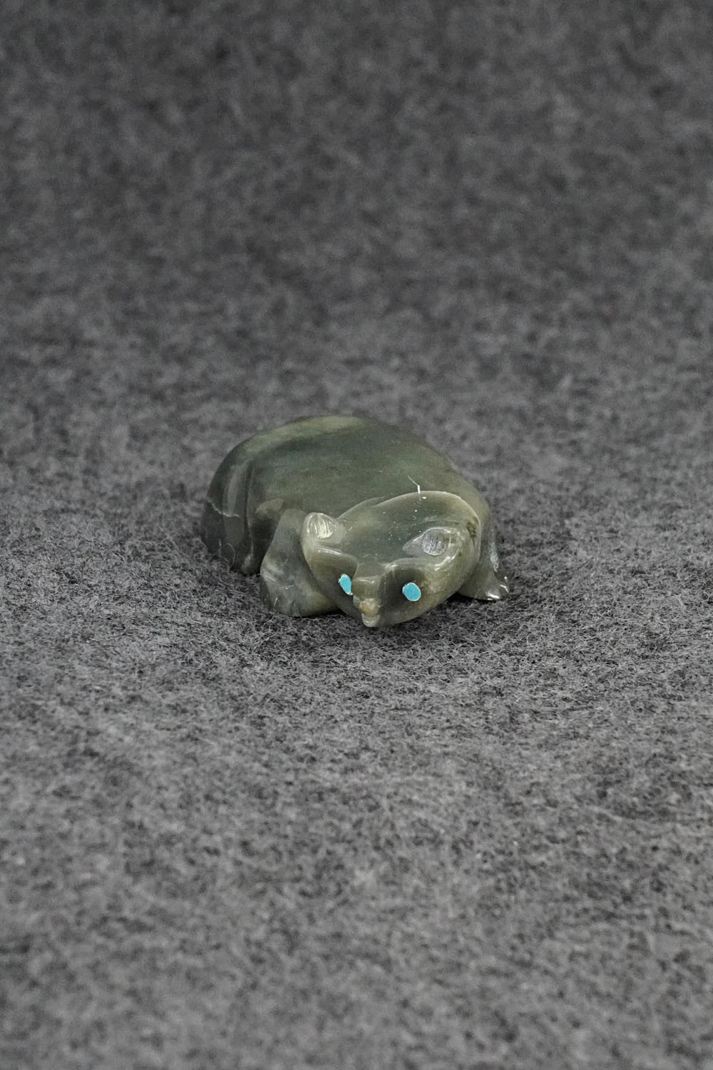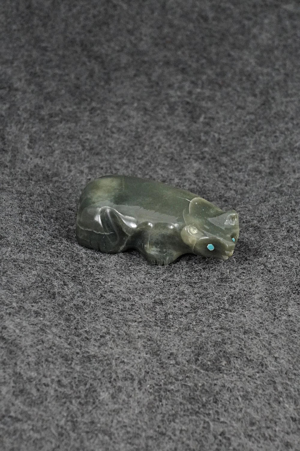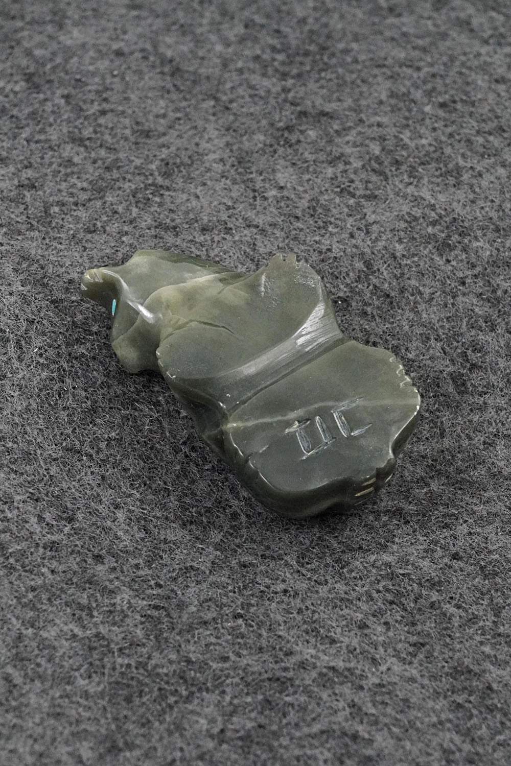 This badger Zuni fetish was carved by David Chavez. The bottom is signed DC.
