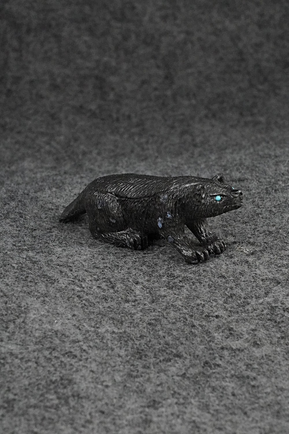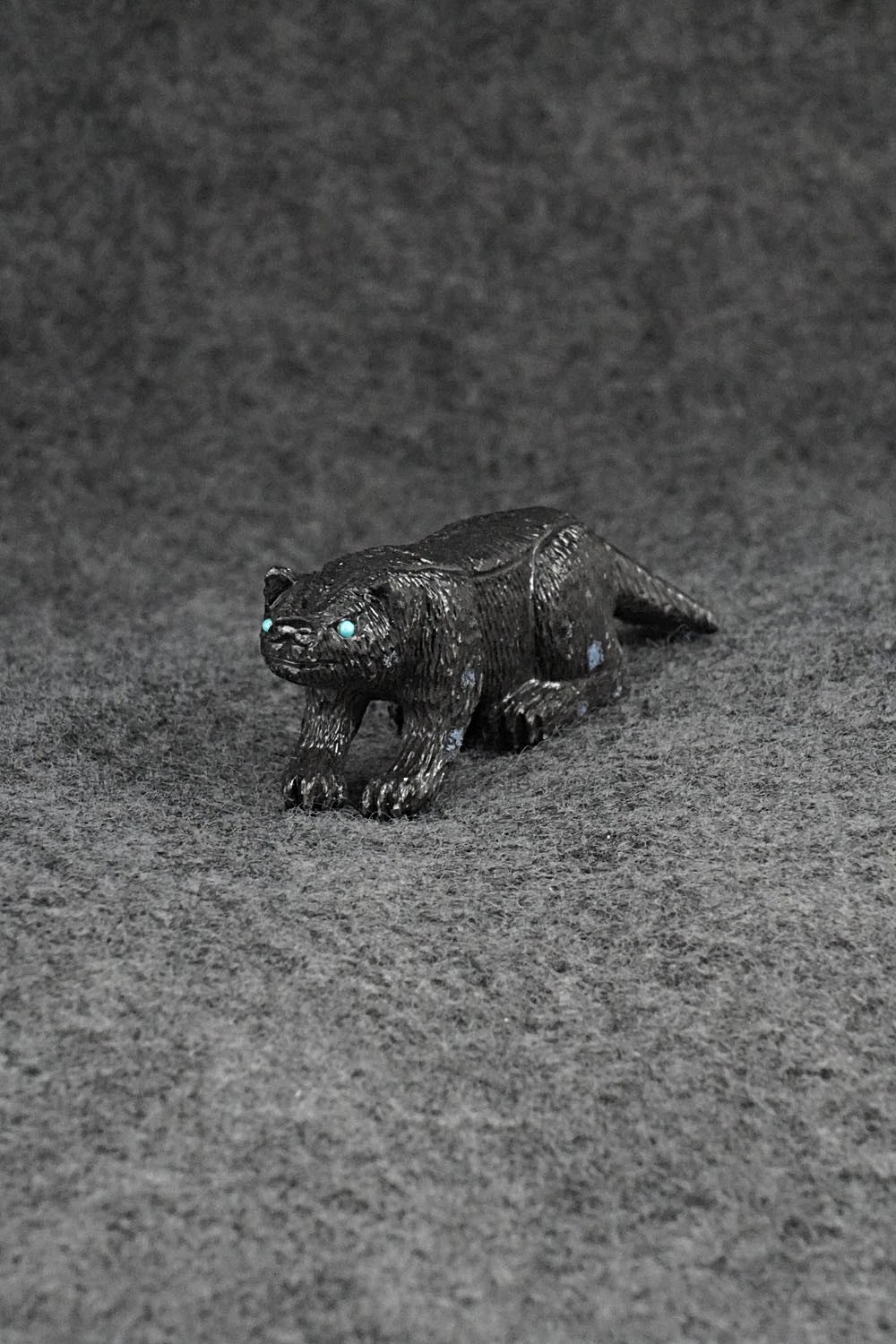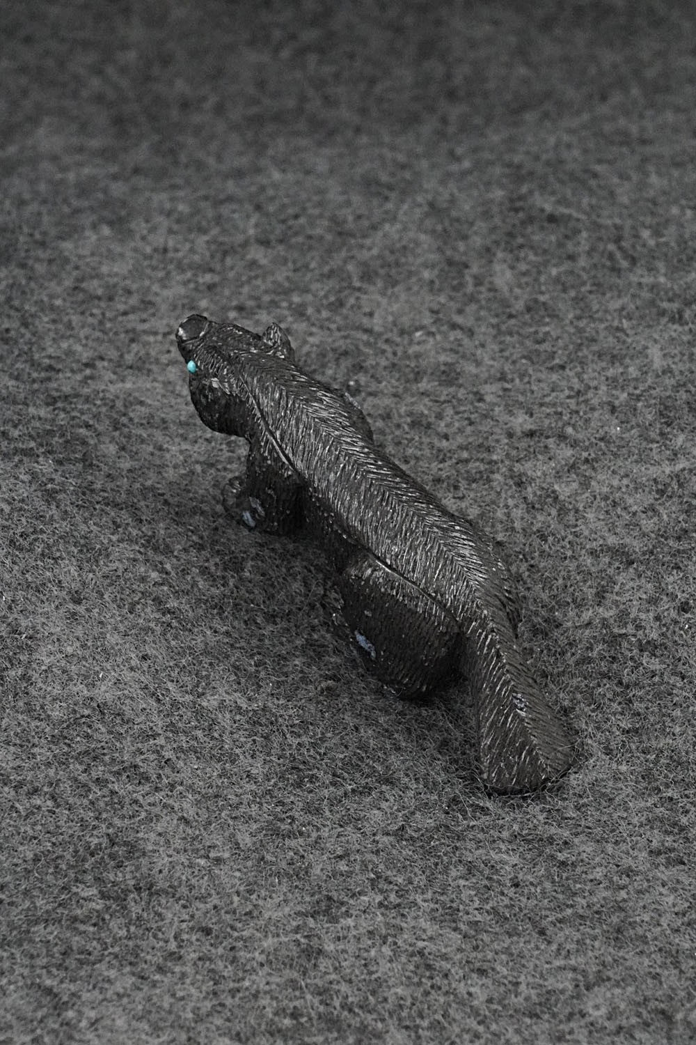 This badger Zuni fetish was carved by Florentino Martinez. The bottom is signed F Martinez and Zuni.