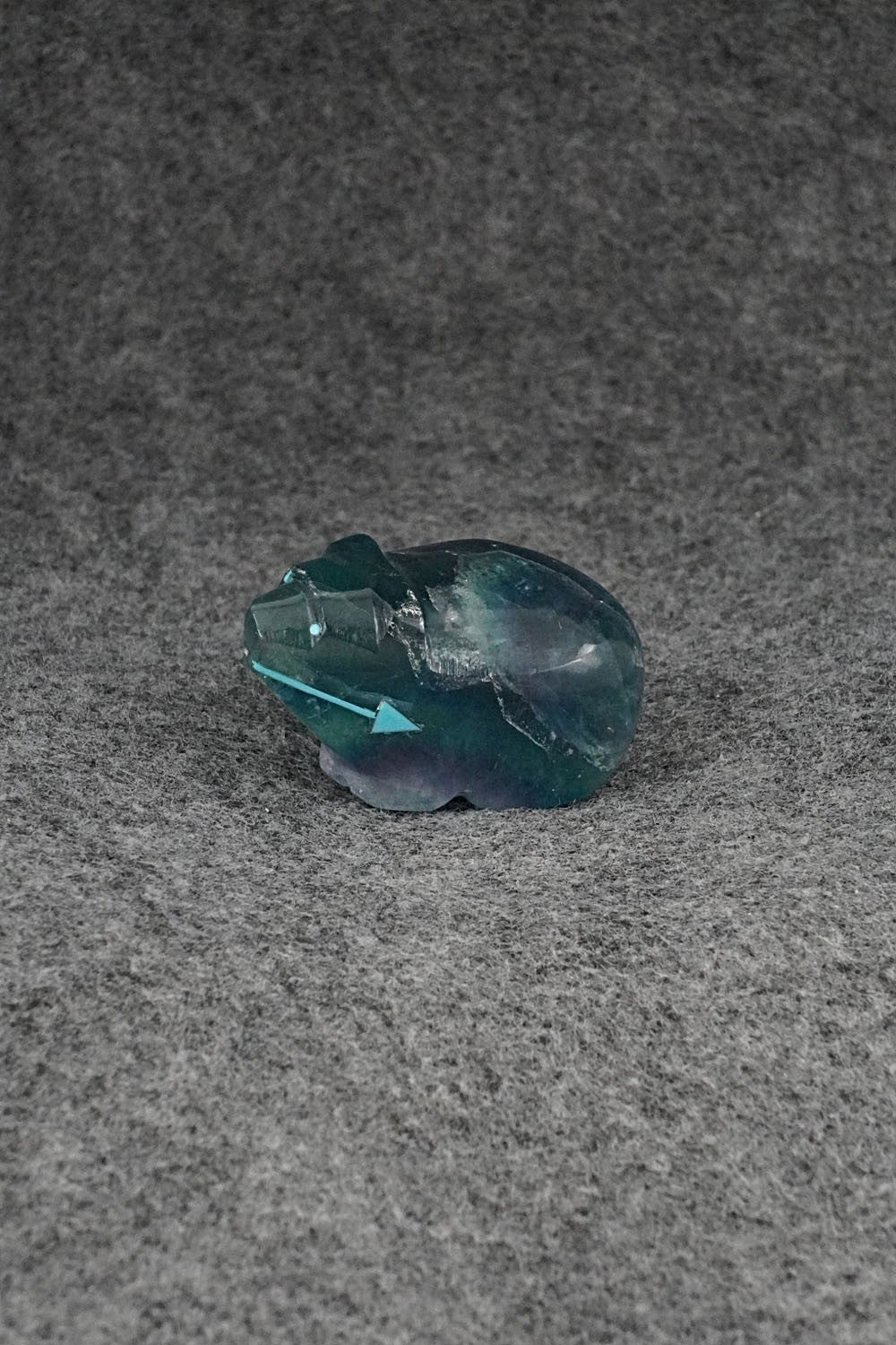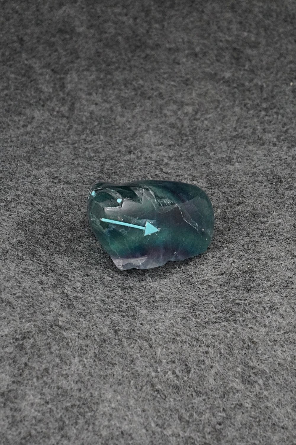 This bear with arrow inlay design Zuni fetish was carved by Abby Quam Panteah. The bottom is signed CAP.
