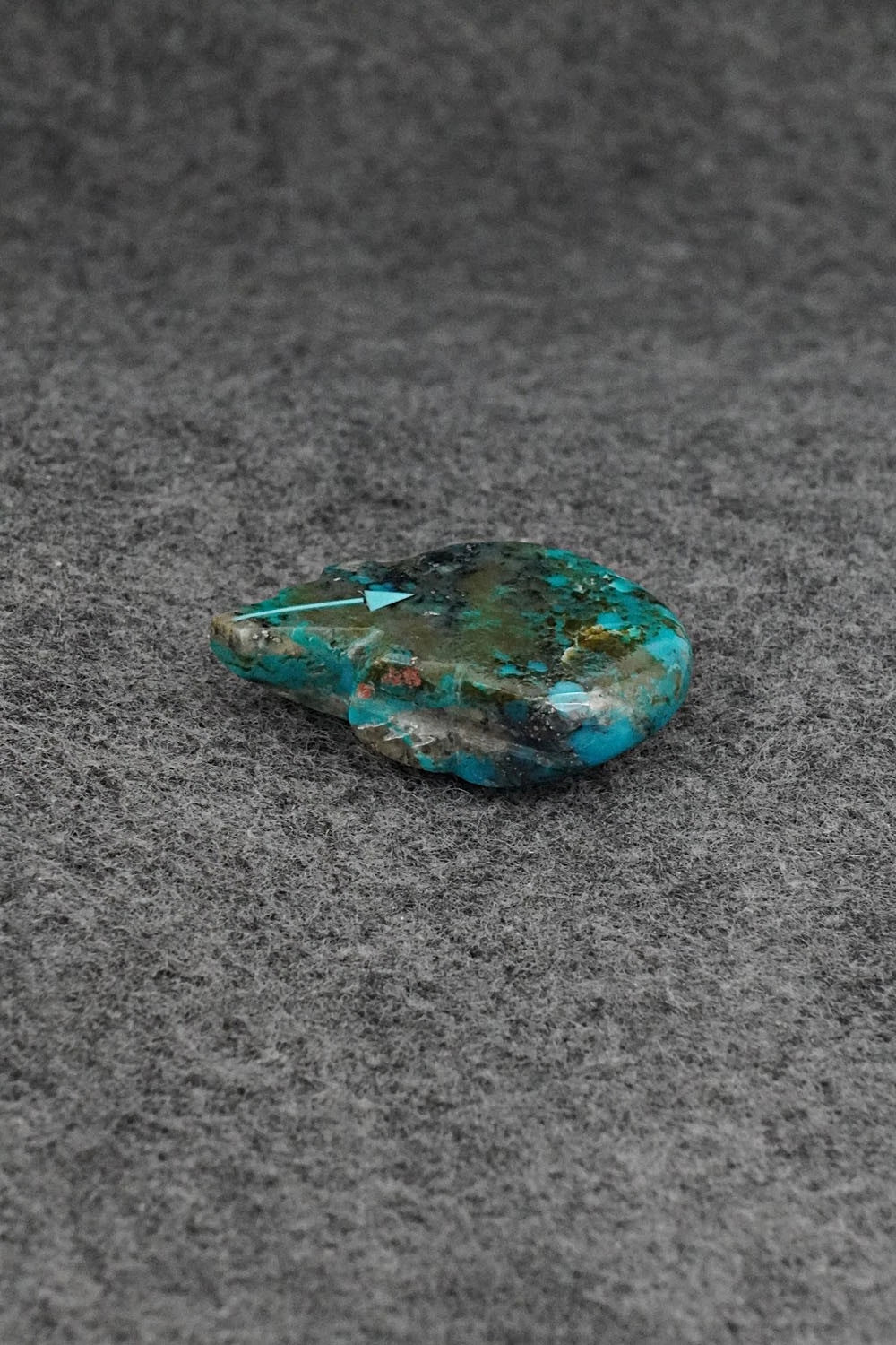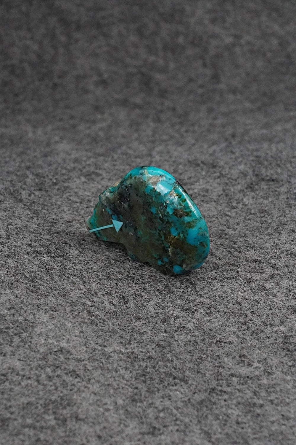 This bear with arrow inlay design Zuni fetish was carved by Abby Quam Panteah.
