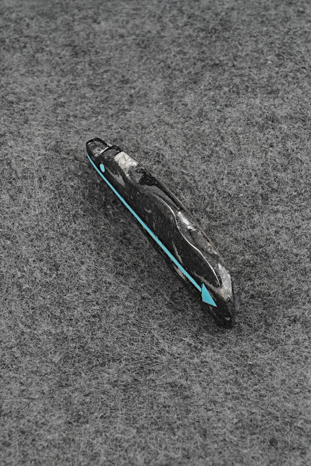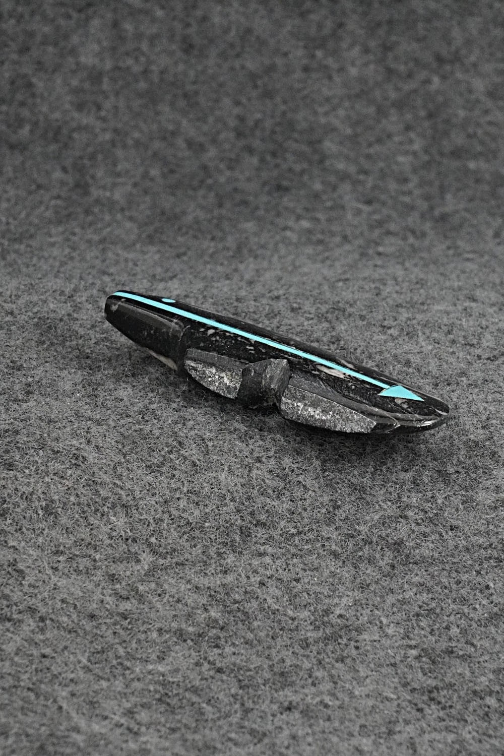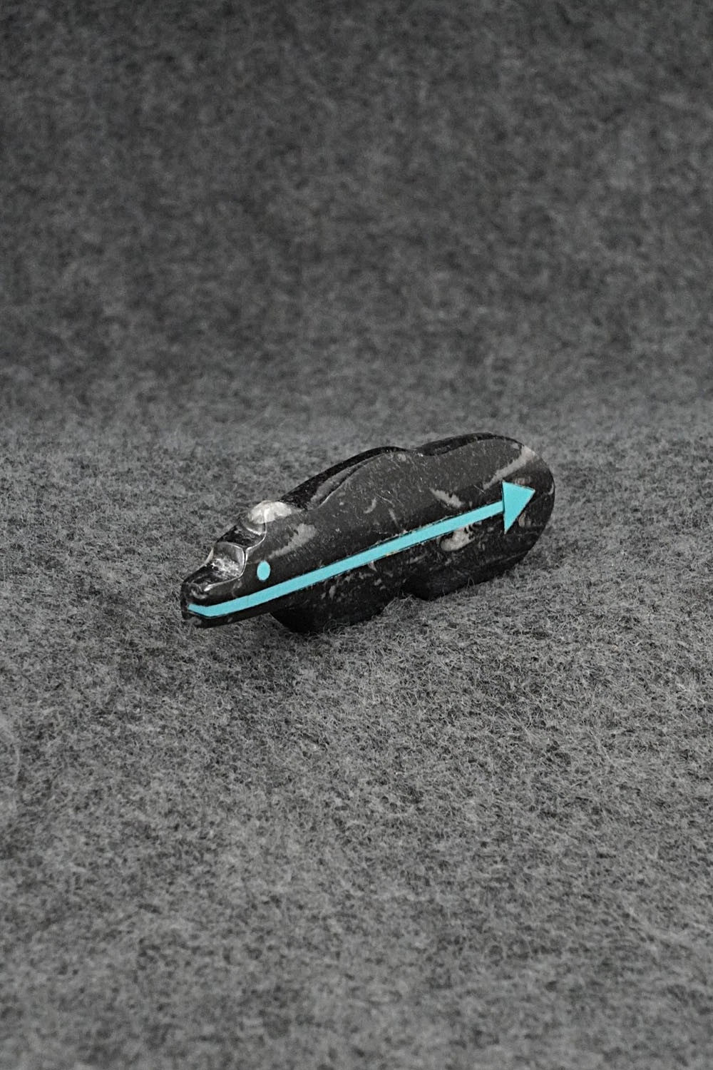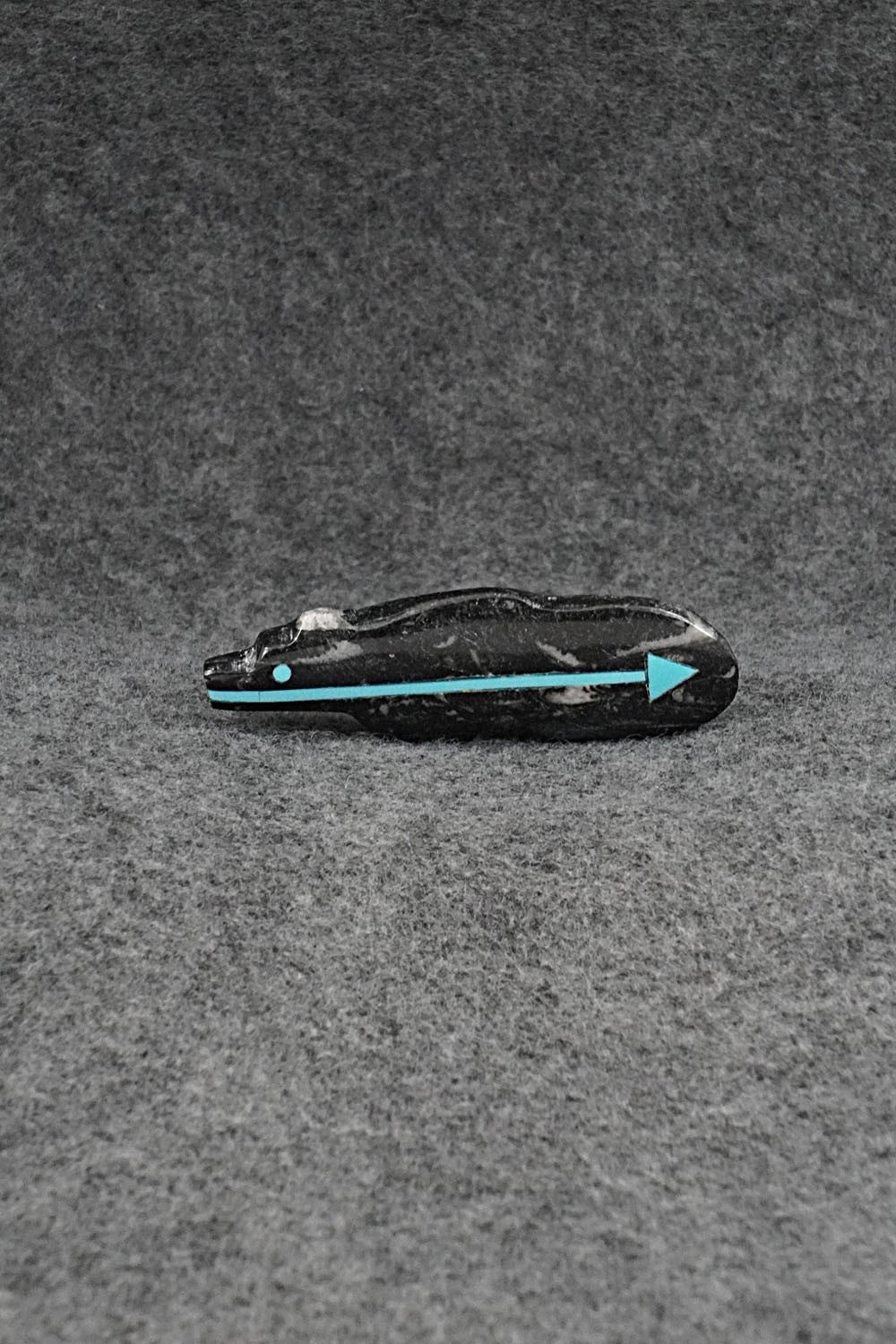 This bear with inlay arrow design Zuni fetish was carved by Bernard Laiwakete. The bottom is signed BL and Zuni.