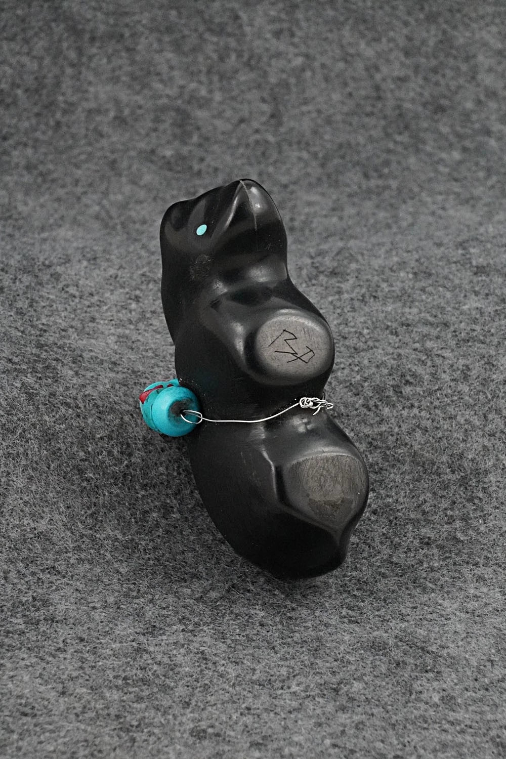 This bear Zuni fetish was carved by Braden Peynesta. The bottom is signed BP.