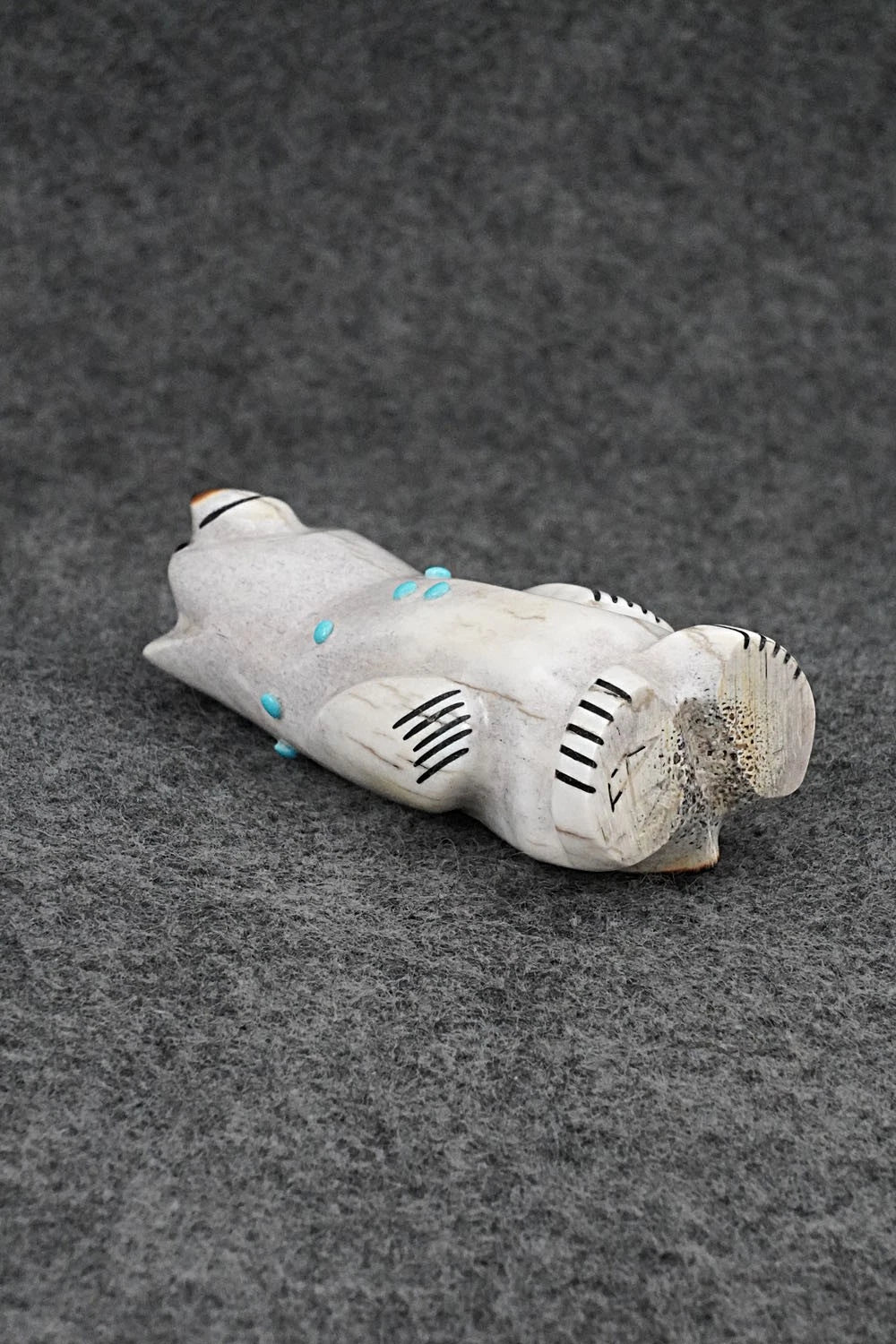This smiling bear Zuni fetish was carved by Claudia Peina. The bottom is signed CPZ.