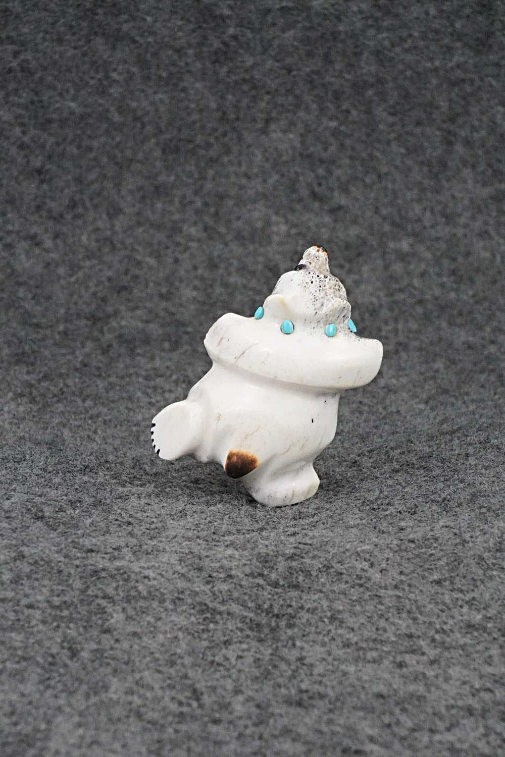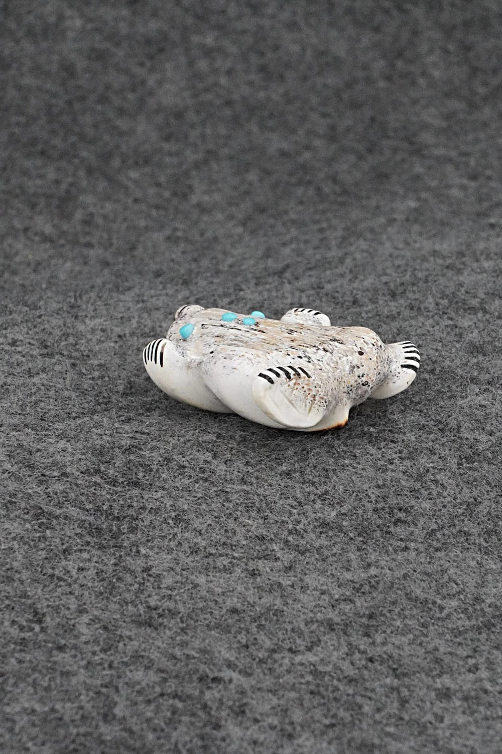 This dancing bear Zuni fetish was carved by Claudia Peina. The bottom is signed CPZ.