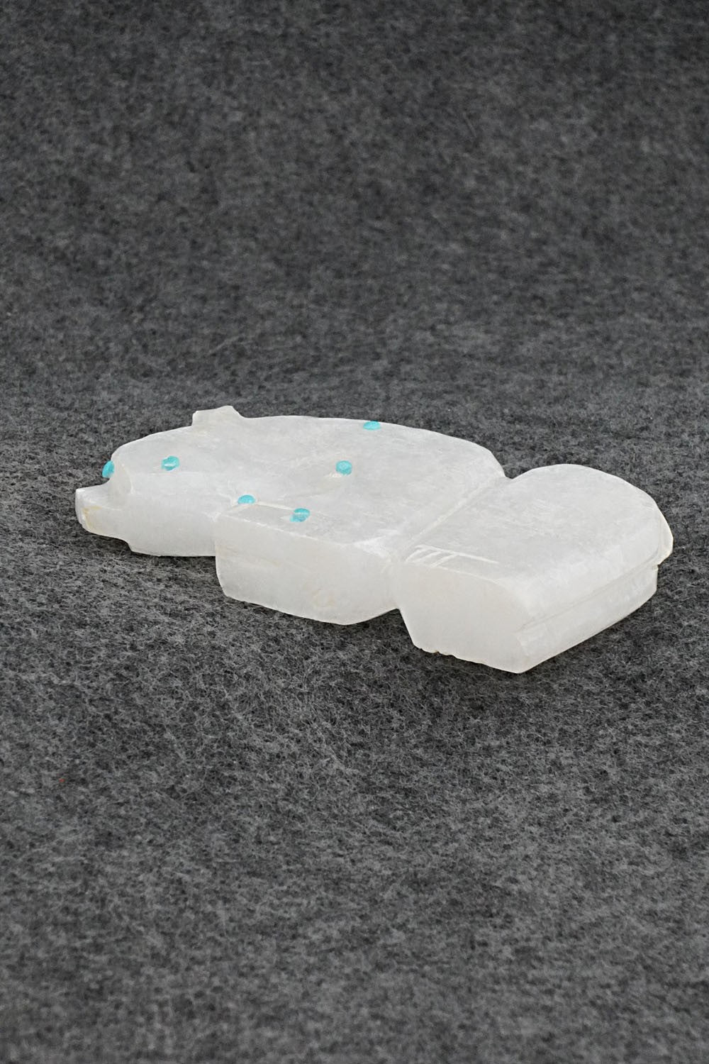 This bear Zuni fetish was carved by Dannette Laate. The bottom is signed DL.