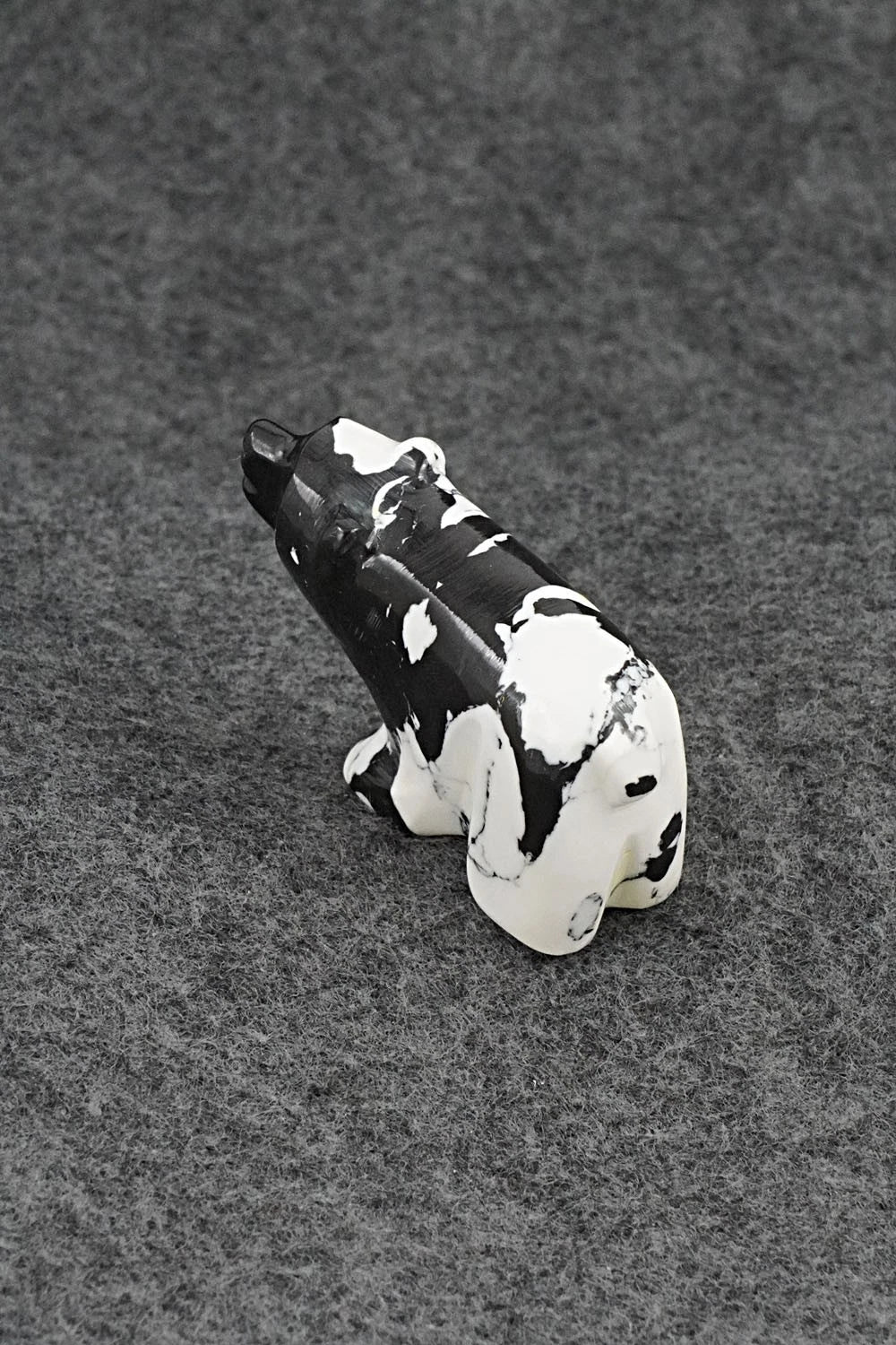 This bear Zuni fetish was carved by David Chavez. The bottom is signed DC.