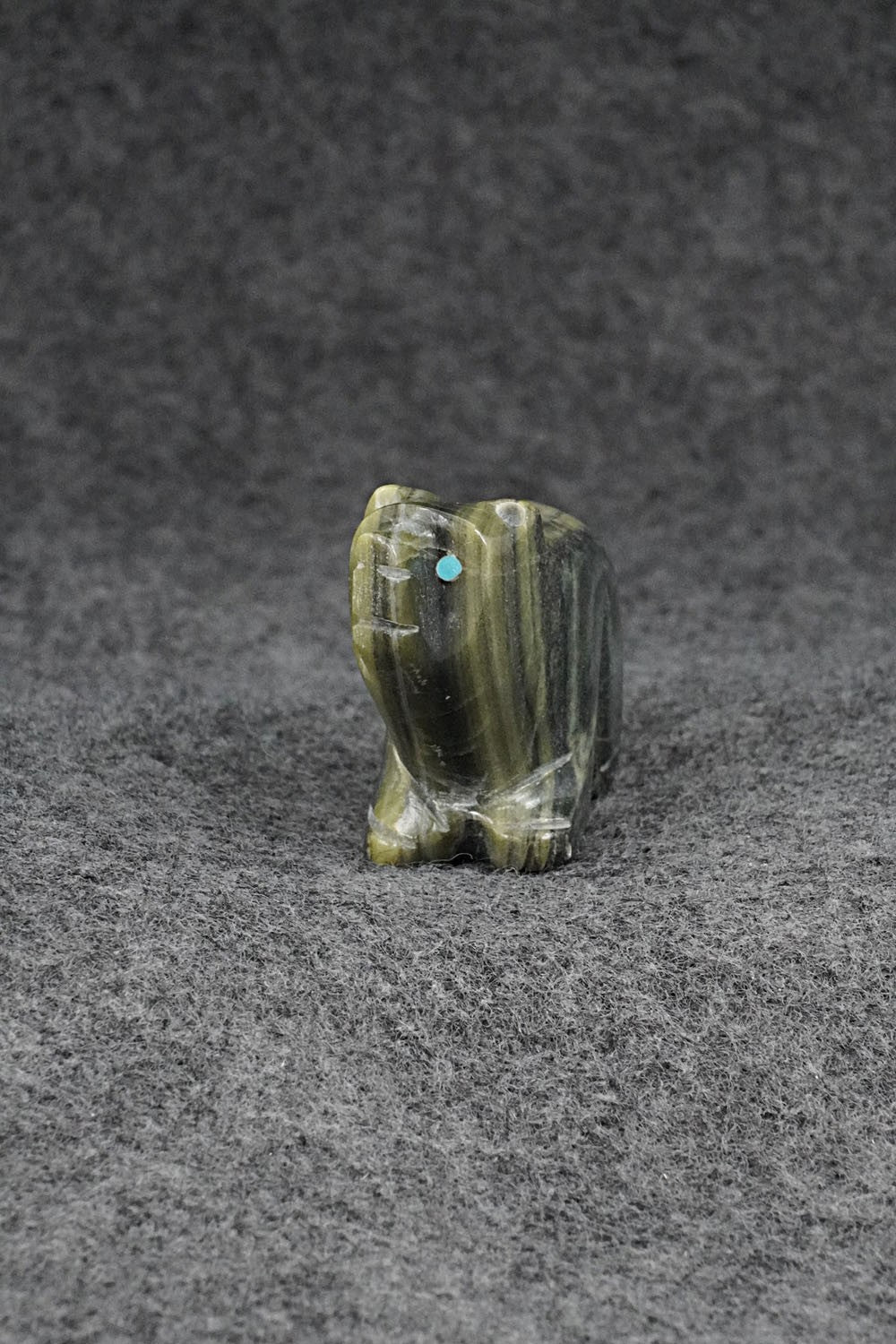 This bear Zuni fetish was carved by David Chavez. The bottom is signed DC.