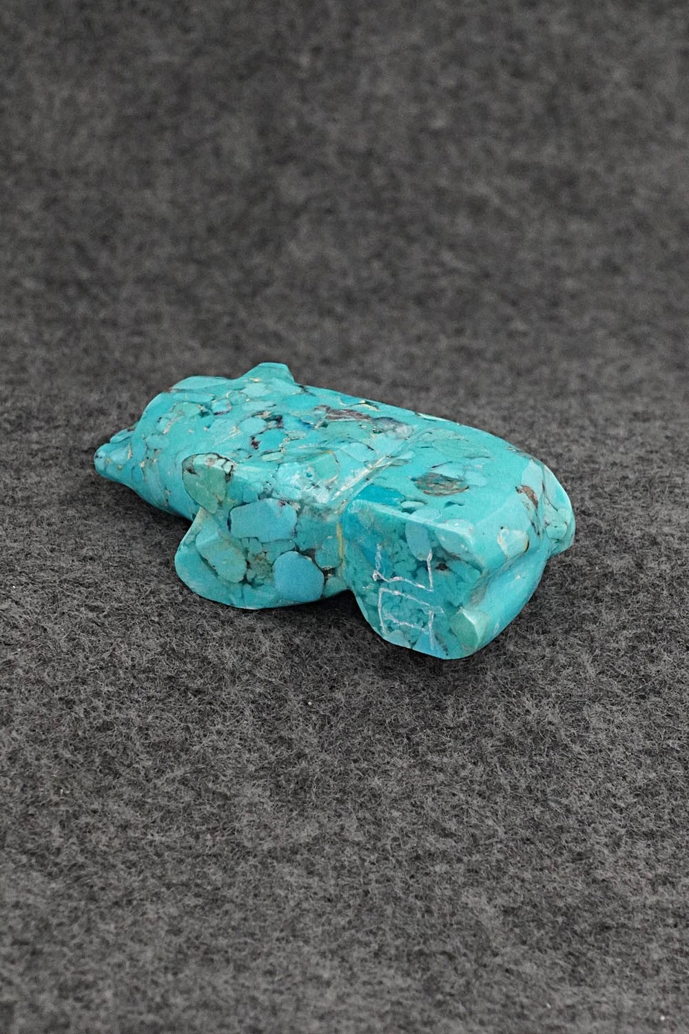 This bear Zuni fetish was carved by David Chavez. The bottom is signed DC.