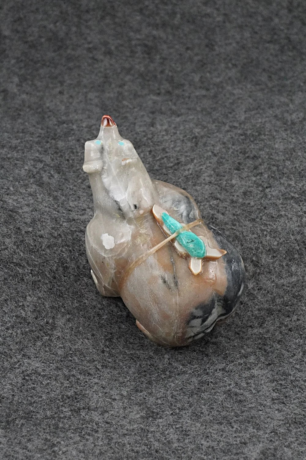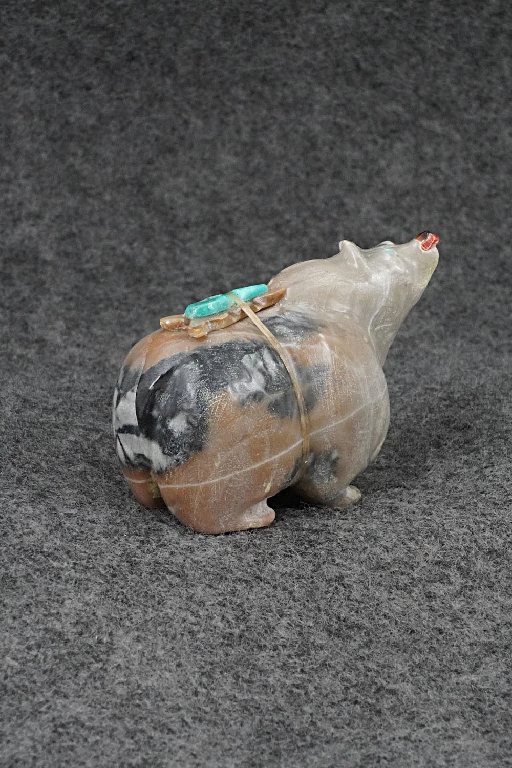 This bear with arrowhead offering Zuni fetish was carved by Freddie Leekya. The bottom is signed FL.