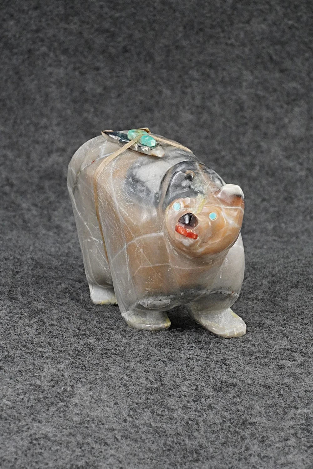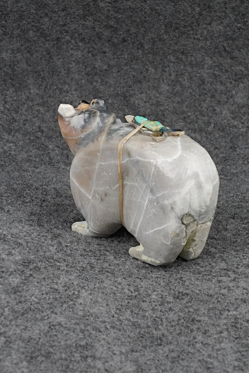 This bear with arrowhead offering Zuni fetish was carved by Freddie Leekya. The bottom is signed FL.